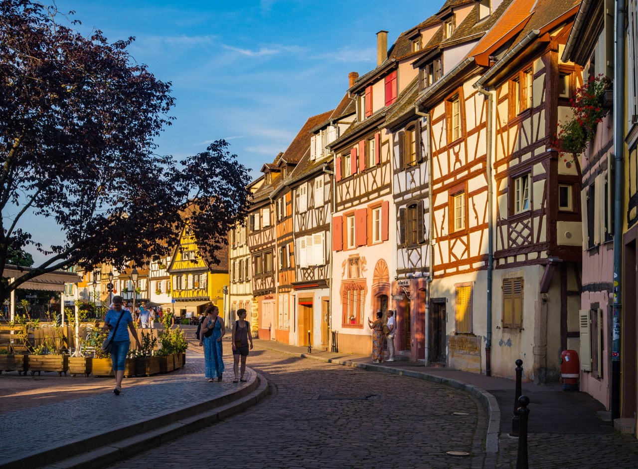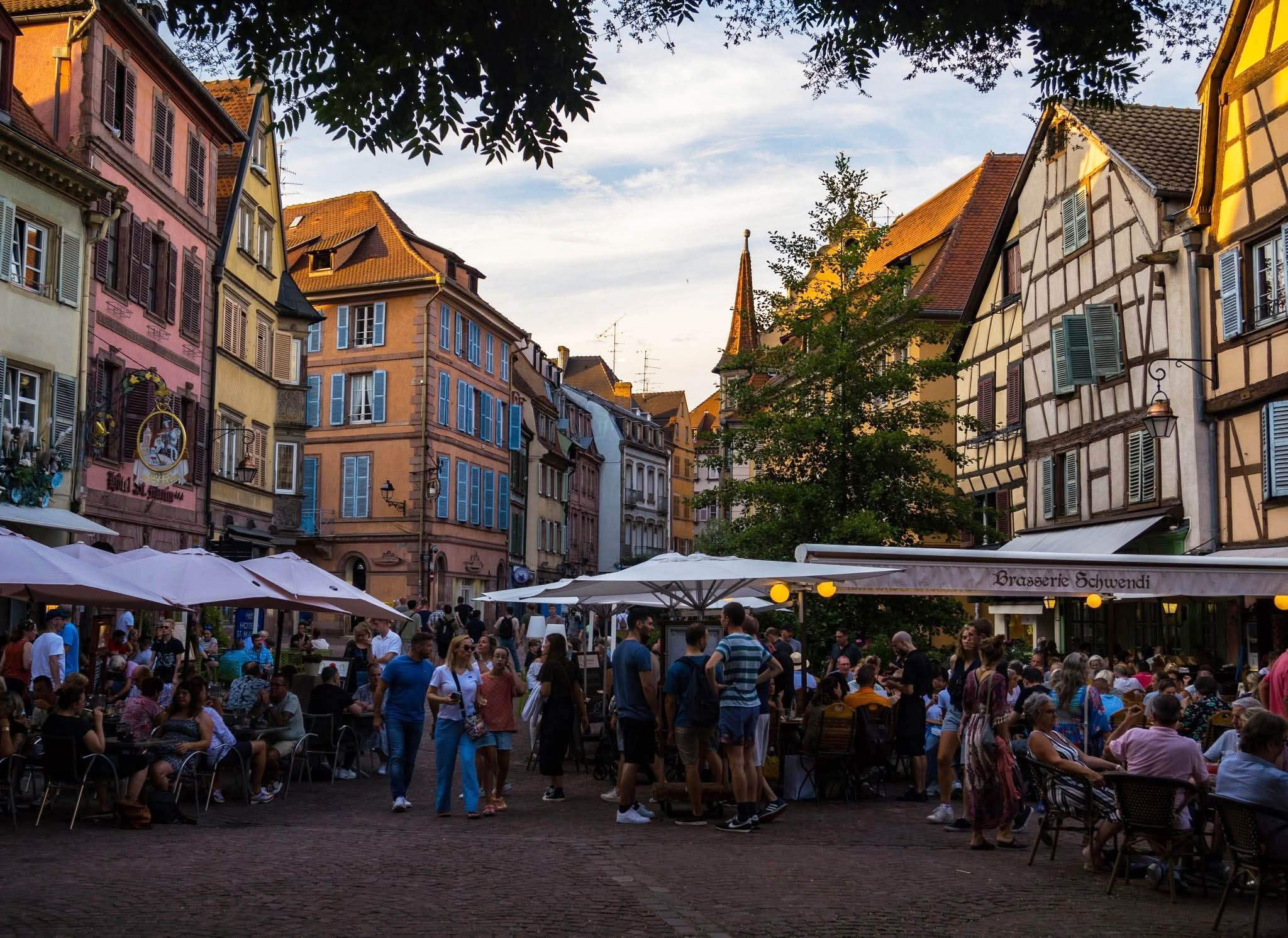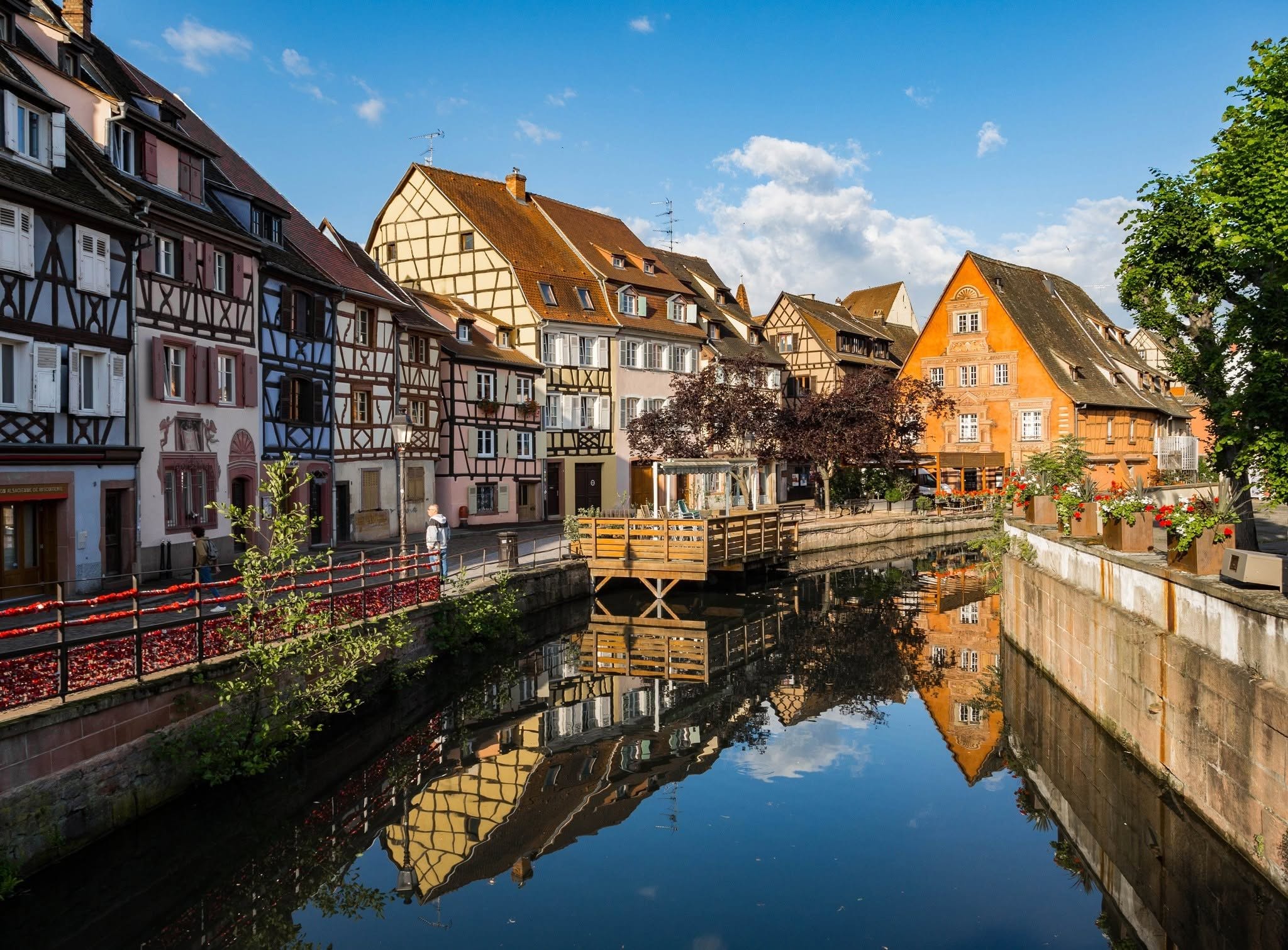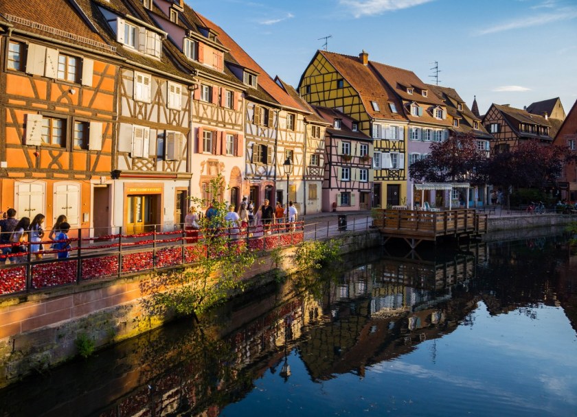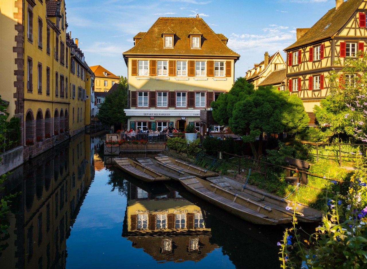Rzeka przeciska się między wąsko ustawionymi, kolorowymi domami, gdzieniegdzie poprzecinana jest mostkami, a miejsca gdzie niegdyś handlowano rybami i innymi towarami służą dziś mieszkańcom i turystom – można trafić na restauracje z klasycznymi flammkuchen jak i takie rekomendowane przez Przewodnik Michelin oferujące kuchnię bardziej wysublimowaną – dodatkowo, trzy gwiazdkowane restauracje Michelina znajdziecie bliżej centrum.