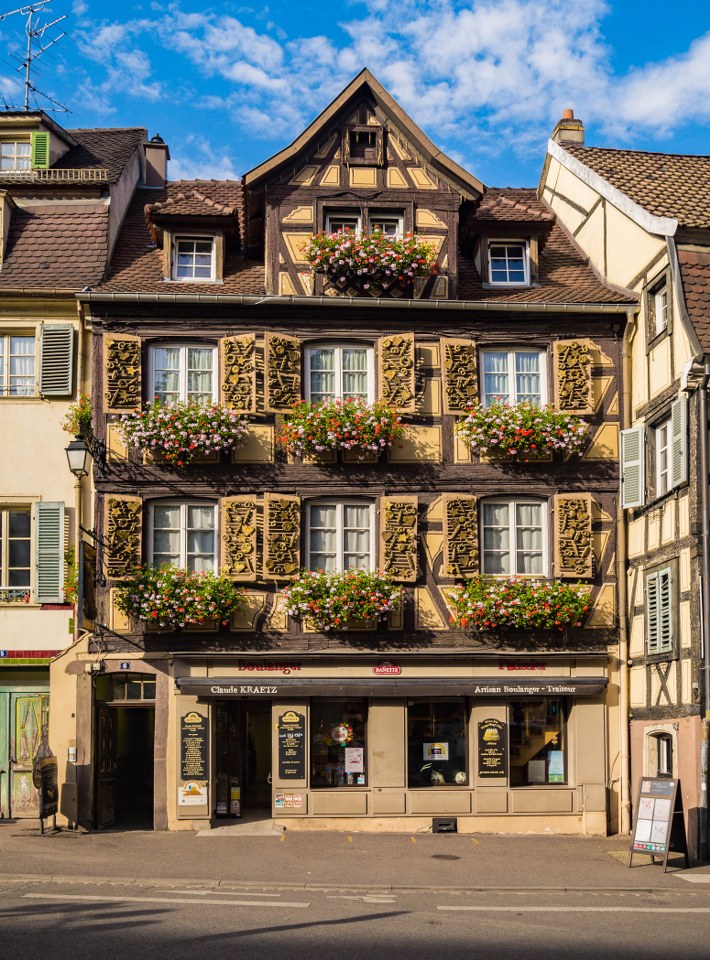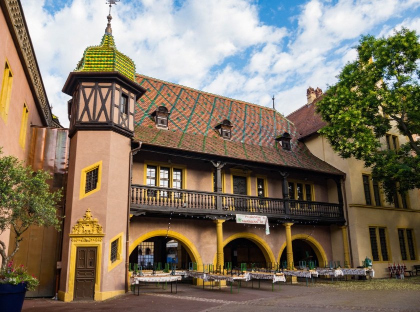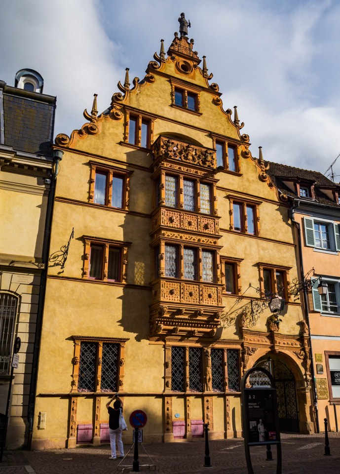 Kamienica od samego początku służyła wpływowym mieszkańcom Colmaru, z czasem stając się siedzibą Giełdy Win, a to naprawdę nie przelewki. Do dziś zresztą to z Colmaru roztacza się pieczę nad wszystkimi apelacjami w Alzacji. W 1902 roku znany nam już August Bartholdi przyozdobił szczyt kamienicy rzeźbą bednarza… takiego najwyraźniej już po pracy, degustującego miejscowego, kto wie sylvanera, rieslinga?