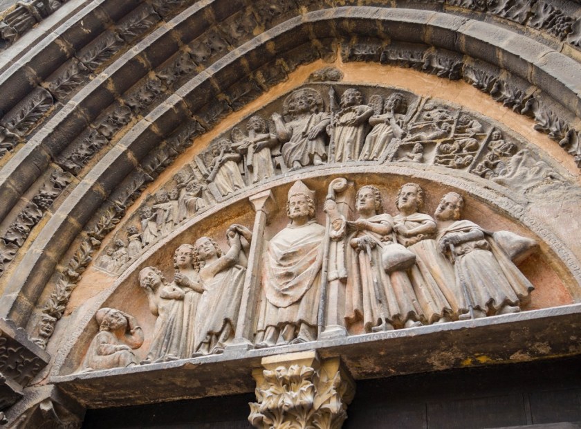 Nad Placem Katedralnym góruje potężna sylwetka gotyckiego kościoła kolegiackiego Św. Marcina, wzniesionego w XIII-wieku na reliktach starszej romańskiej świątyni, która… z kolei powstała na gruzach jeszcze starszej pochodzącej z czasów Karolingów. Kościół często nazywany jest katedrą, i epizod katedralny miał tu faktycznie miejsce, lecz był krótki i co być może najważniejsze wiązał się z czasem Rewolucji Francuskiej i tzw. Kościoła Konstytucyjnego, który po kilkunastu latach funkcjonowania, ogłoszenia schizmatycznym został rozwiązany przy podpisaniu Konkordatu. Czy często używana do dziś nazwa nawiązuje do tych czasów? Nie wiem, być może… a może po prostu wielki gabarytami kościół łatwo nam nazywać katedrą i jakoś tak się przyjęło?