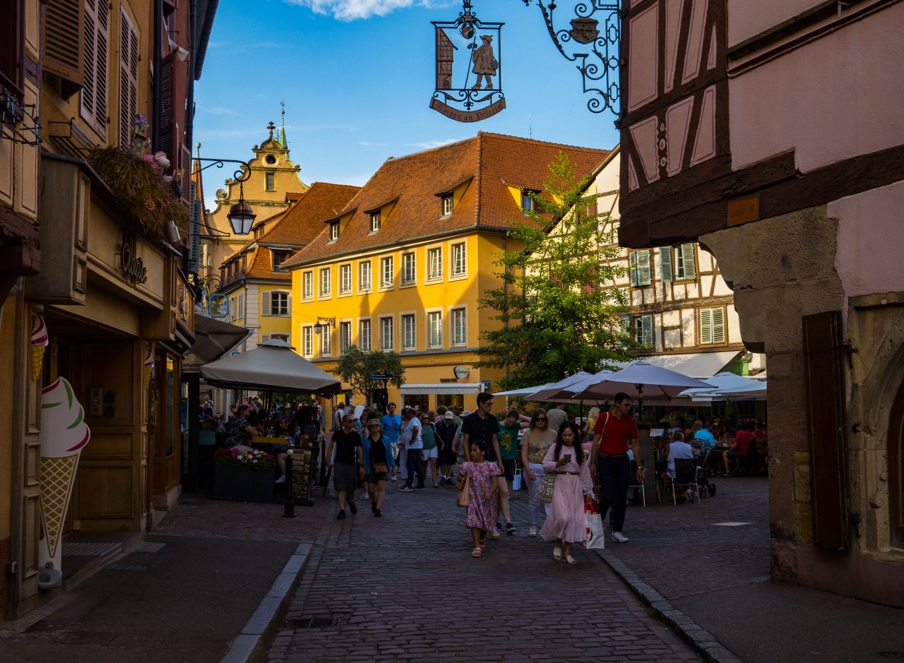 Czy to jedno z najbardziej urodziwych alzackich miasteczek? Jeszcze jak! Czy przez to w letnie dni może być tam tłoczno? No niestety jest taka możliwość. Czy wraz z popularnością skaczą też ceny w restauracjach? No niestety tak. Czy są to niedogodności na tyle duże by rezygnować z przyjazdu? No dajcie spokój, Colmar jest tak ładny, że nic nie było w stanie odebrać przyjemności ze spaceru po jego zabytkowych uliczkach – nawet momentami straganoza rodem z Krupówek i wspomniane tłumy. Ceny jedzenia nie były mi straszne bo stołowałem się głównie w tańszych, okolicznych miejscowościach 😀 Anyway, im wcześniej spacer zaczniecie tym większy będzie wasz zachwyt. Nie wahajcie się i przyjeżdżajcie!