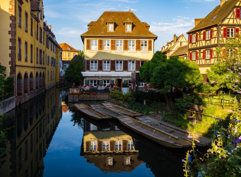 Ilekroć czytać będziecie o Colmarze tylekroć traficie na nazwę Mała Wenecja i choć sam nie należę do fanów takich porównań, to niech już będzie. Co tu mamy? Piękne domy tu mamy. No, ale architekturą bucha każdy metr Starego Miasta prawda? Co więc więcej? Otóż, rzekę Lauch i jej kanał(y), pięknie się w miejską zabudowę wpisujące, oferujące – niemal jak w owej Wenecji – rejs, tyle że nie gondolą a płaskimi łodziami, niegdyś wykorzystywanymi przez miejscowych rybaków i handlarzy.