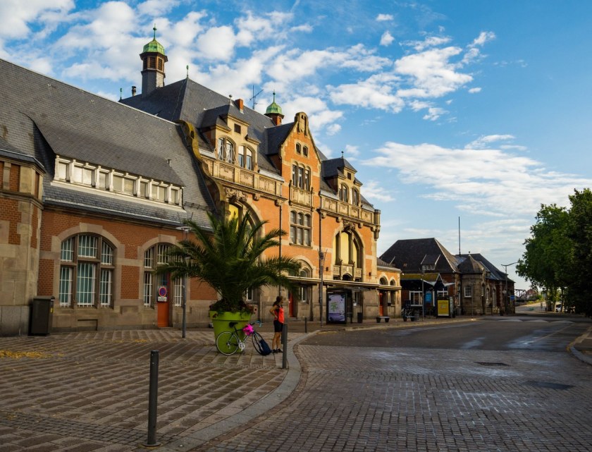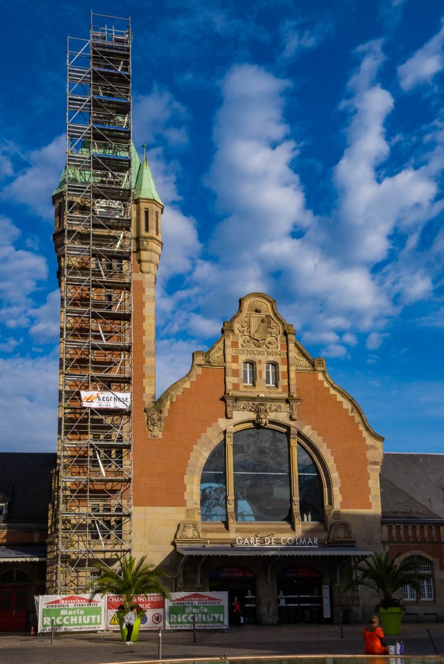 Nie podpowiem wam jakim środkiem transportu podróżowałem, ale wystarczy wam wiedzieć, że rano stając przed dworcem kolejowym musiałem mocno się rozciągnąć by każdy staw wrócił na swoje miejsce 😛 Wielu z was na widok neorenesansowego dworca z pewnością poczuje pewnego rodzaju deja vu: przecież to nasz stary znajomy z Gdańska! I nie będzie w tym spostrzeżeniu nieprawdy: bryły dworców w Colmarze oraz Gdańsku powstały wedle tego samego projektu (nasz jest starszy o kilka lat) i dopiero w szczegółach i różnych elementach elewacji znaleźć można większe różnice.