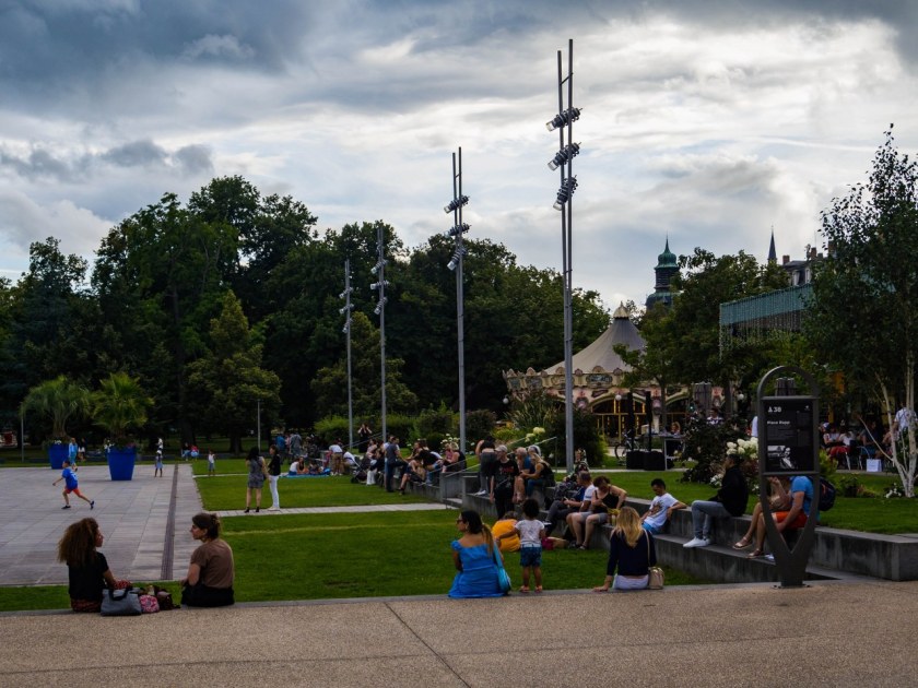Tym jednak co mnie w sąsiedztwie obu budynków najbardziej zachwyca jest zielony plac powstały w miejscu funkcjonującego jeszcze kilka lat temu parkingu! Ludzie korzystają, odpoczywają, muzycy przygrywają, ładnie to wygląda.