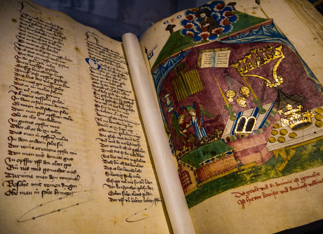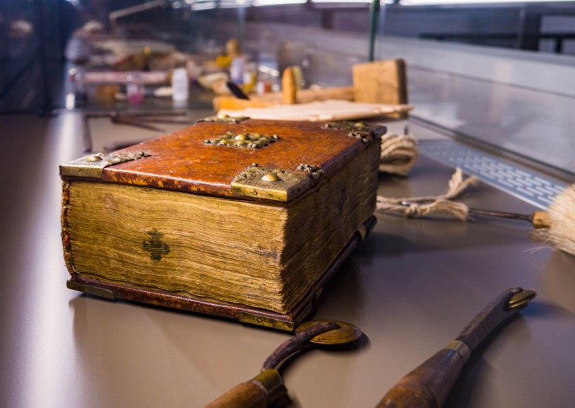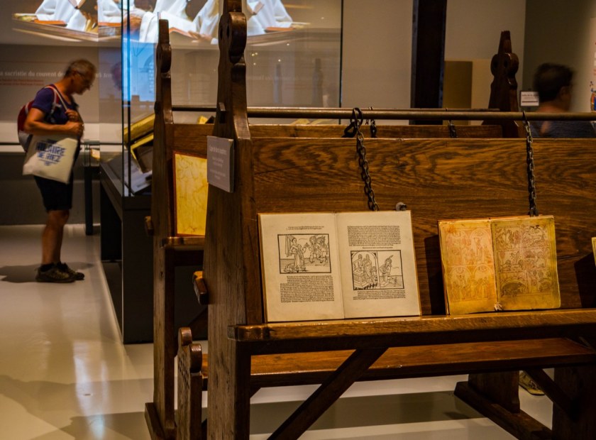 Mam świadomość, że odwiedzanie bibliotek nie należy do najpopularniejszych form zwiedzania, ale wielokrotnie przekonałem się, że miejsca takie okazują się być jednymi z najciekawszych do odkrywania. Colmarska biblioteka znajdujaca się w klasztornych budynkach sąsiadujących z kościołem Dominikanów należy do tych rodzynków, które choć częściowo dają nam poczuć się jak Indiana Jones czy bohater (no nie spamiętam imienia) Skarbu Narodów. Czego tu nie mamy? Drugi największy we Francji zbiór inkunabułów (przeszło 2000!), idące w tysiące sztuk XVI-wieczne ryciny, rękopisy sięgające nawet i czasów Karolińskich, jeden z trzech ocalałych tomów pierwszej Biblii wydrukowanej w języku innym niż łaciński, iluminowane księgi z alzackich klasztorów. Mnóstwo historii i alzackiego dziedzictwa – tak tego francusko i niemieckojęzycznego. Uwielbiam szwendać się po takich miejscach.