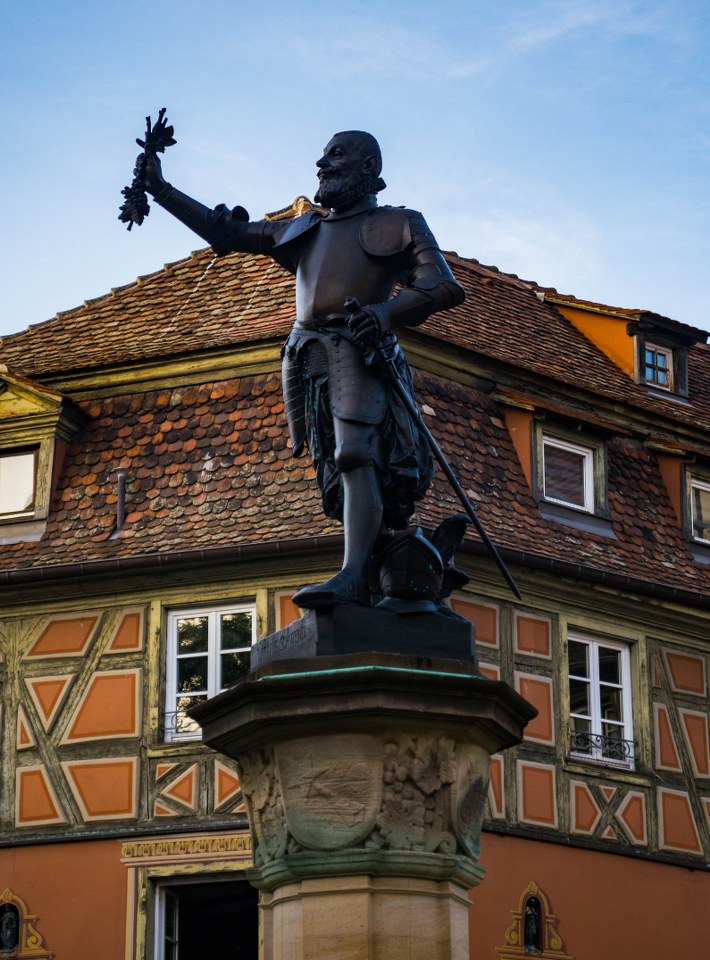 A skoro przy winie jesteśmy to przez stulecia jednym z bardziej znanych, lubianych i cenionych win z Alzacji był miejscowy Tokaj Pinot Gris. Krzewy węgierskiego specjału miał w XVI-wieku przywieźć baron Lazarus von Schwendi, walczący w służbie cesarza Maksymiliana II na Węgrzech z Turkami. Wino się zadomowiło, przyjęło i zasmakowało. Jednak dziś, przeszło 450 lat później alzackich Tokajów już nie uświadczymy, bo po wielu bojach… nazwy tej używać mogą już tylko winiarze z regionu Tokaju na granicy Węgier i Słowacji. Ciekawe czy baron Schwendi, którego spotkacie na miejscowej fontannie zdawał sobie sprawę jak sprawy się potoczą?