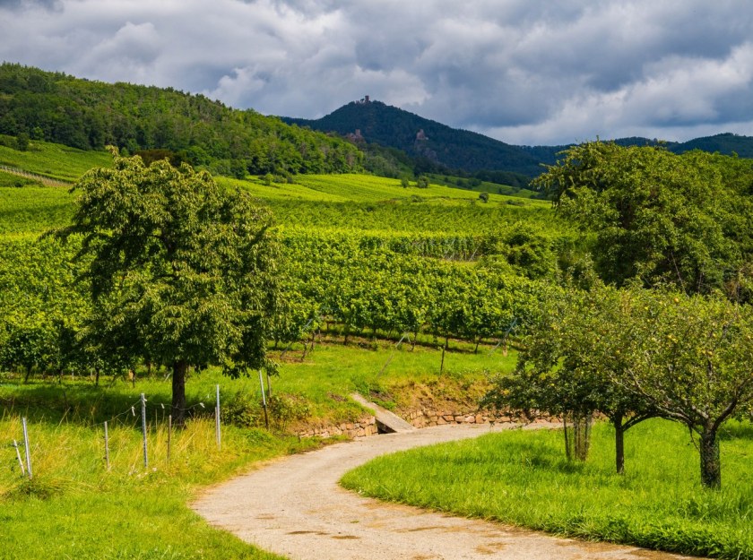 Hunawihr jest miejscowością niewiele mniejszą od Riquewihr, nie tak ciasno jednak zabudowaną, mającą przez to o połowę mniej mieszkańców. Dodatkowo, przez to, że leży bardziej pośrodku niczego ma kilka razy mniejszy problem z turystami. Podobnie jak Riquewihr zaliczana jest jednak do 176 najładniejszych wiosek Francji, i trzeba przyznać, że ma w rękawie kilka asów, którymi może przyciągać uwagę – kolorowe domy to oczywistość, ale Parki Motyli czy Rezerwat bocianów (i nie tylko) brzmią już ciekawiej, prawda? No i przede wszystkim otoczony murem, położony wśród winnic na niewielkim wzgórzu gotycki kościół Św. Jakuba Apostoła, perełka. Pięknie ulokowany na tle gór stanowi jeden z bardziej emblematycznych punktów krajobrazu w okolicy a pełna zabytkowych elementów świątynia zaprasza na podróż w czasie, nawet i do XV wieku.