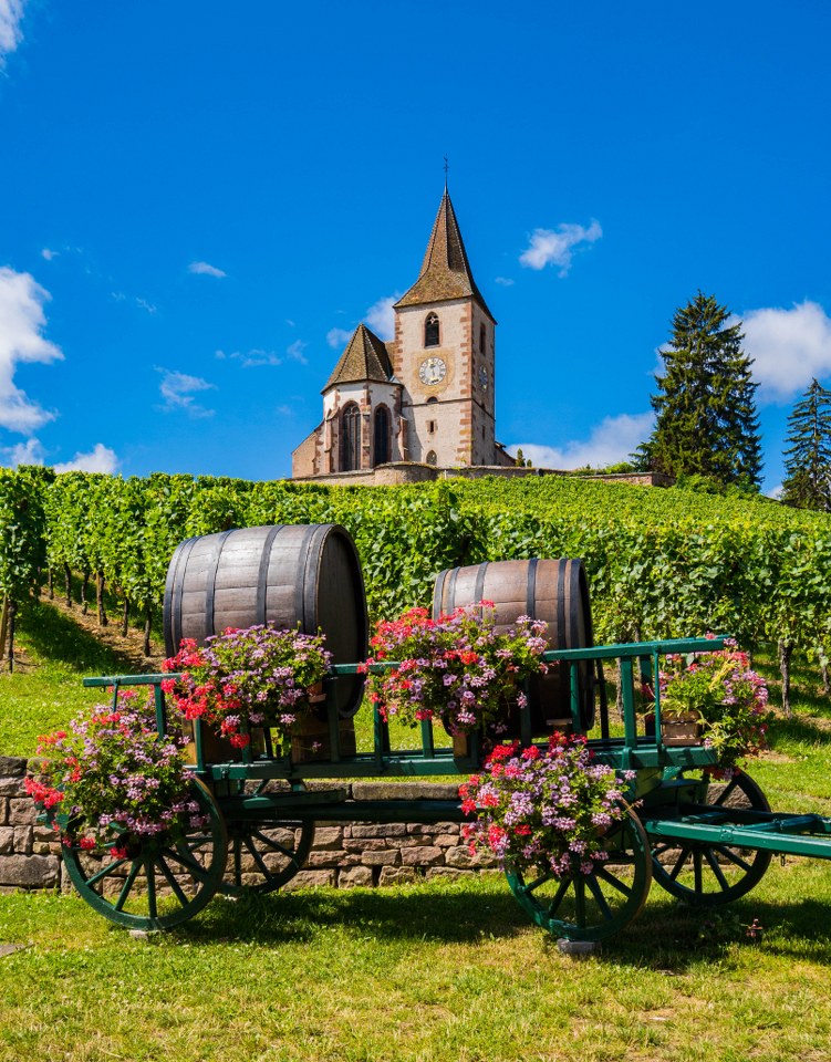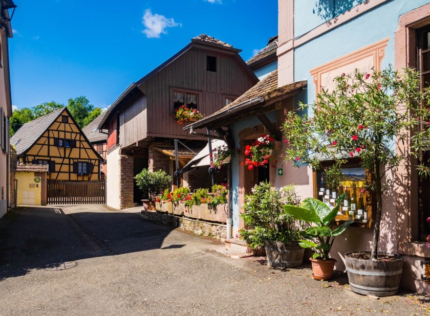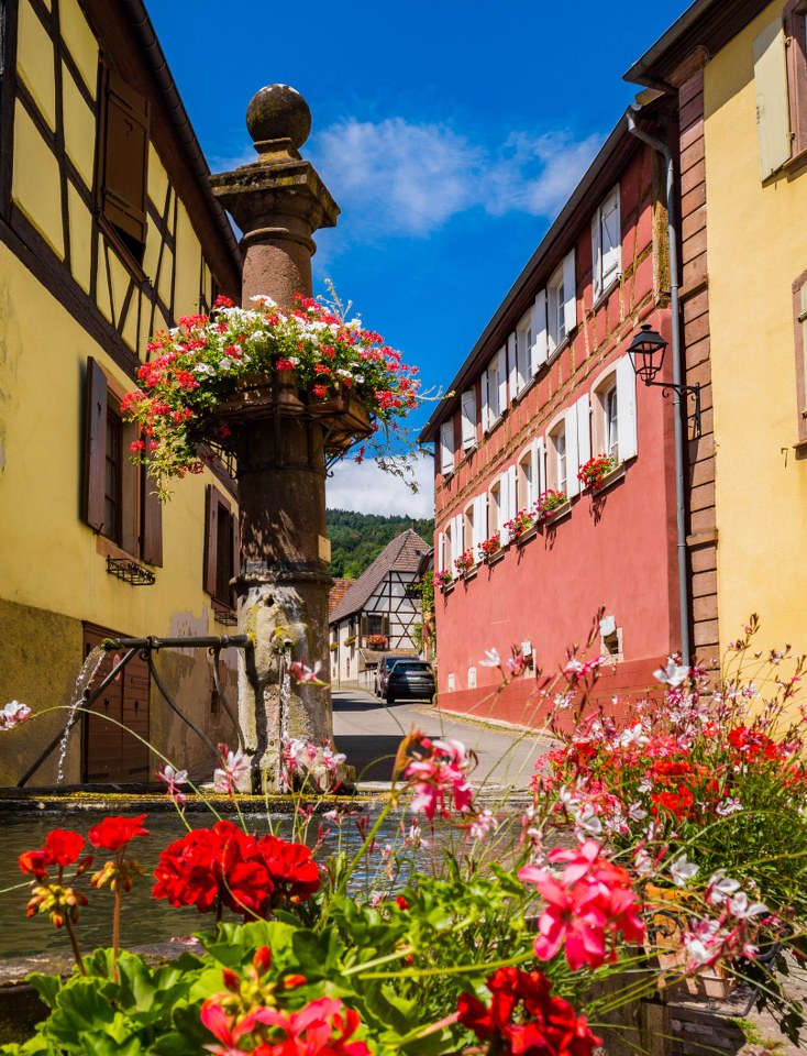 Podobnie jak w Riquewihr pierwsze skrzypce grają tu gotyk i renesans. A do tego kwiaty, dużo kwiatów! Po szerokich portalach i bramach widać, że winiarzy ci we wsi nigdy nie brakowało – dziś łatwiej zatrzymacie się tutaj na degustację miejscowego wina niźli na obiad. W tej ostatniej materii na ratunek przychodzi Chez Suzel, gdzie wina również się napijecie, ale i dobrze zjecie. Przy restauracji znajduje się jedna z miejscowych fontann, druga, leżąca na uboczu znana jest z niemałych cudów: otóż podczas roku nieurodzaju i strasznie słabych zbiorów woda z owej fontanny miała przemieniać się w wino! Nie dziwota, że urosły wokół tego faktu legendy!