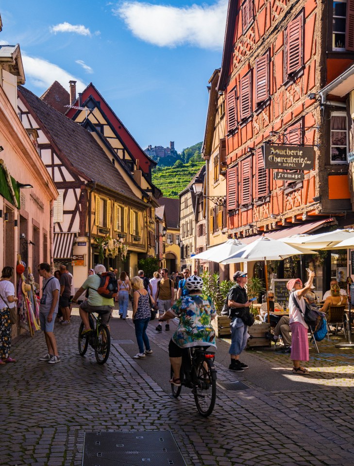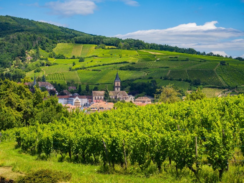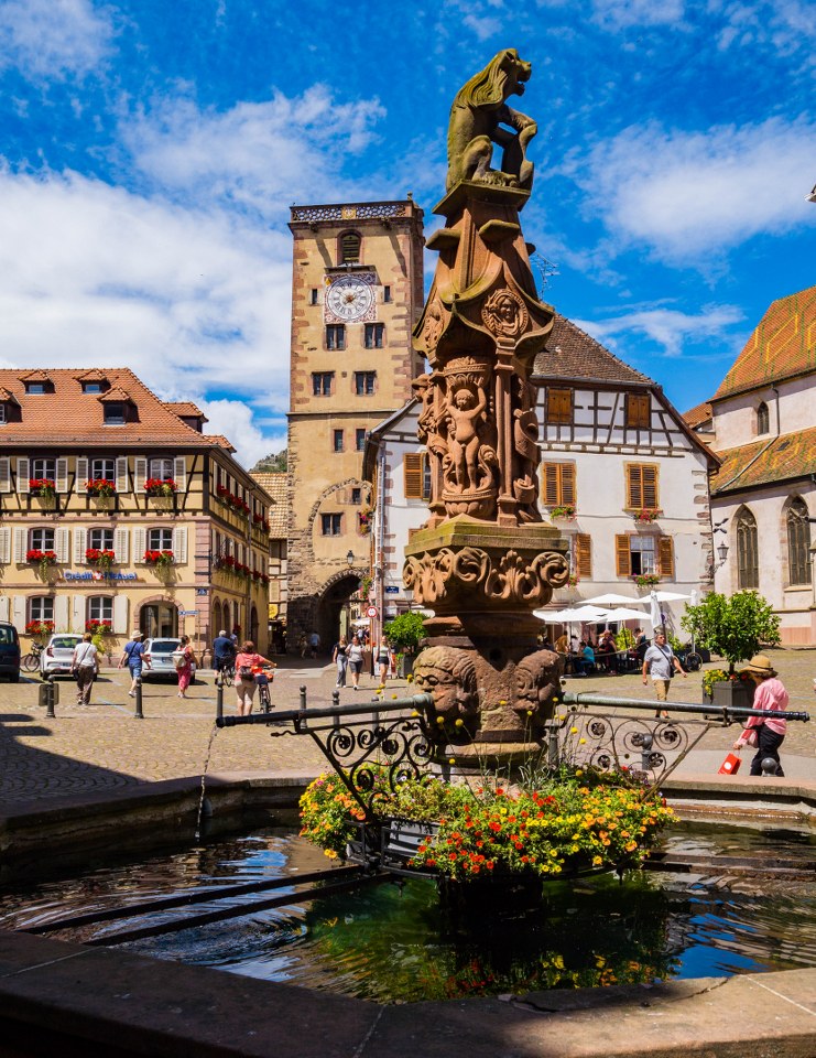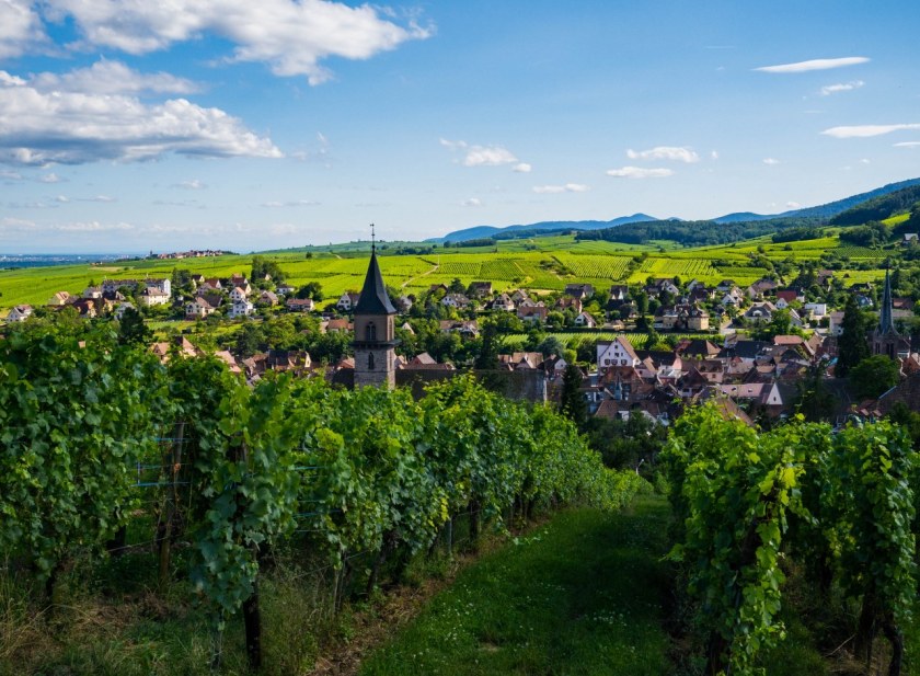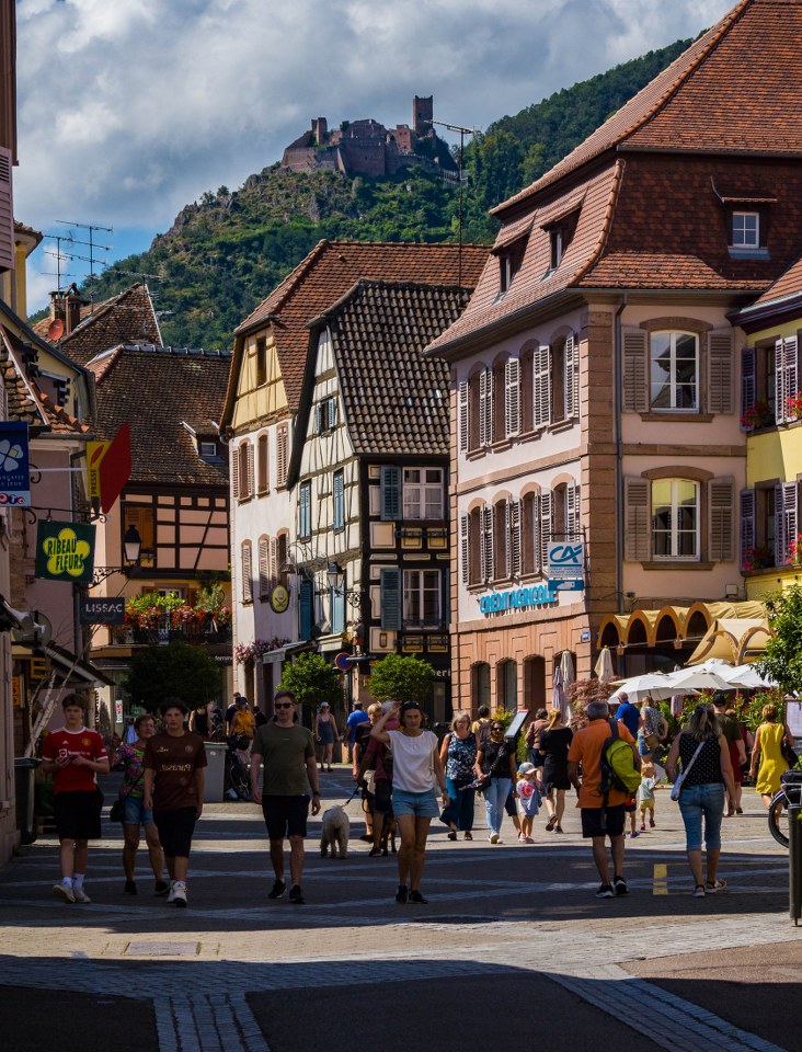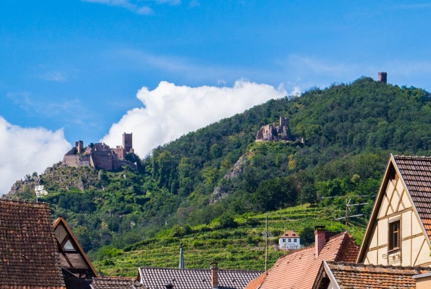 Ribeauville liczy sobie około 5 tysięcy mieszkańców i choć daleko mu do największych miast w Alzacji, to przez stulecia należało do tej grupy, które miały na okolice niemały wpływ. Duża w tym zasługa familii Ribeaupierre, przez wiele lat korzystającej z koneksji na dworze Habsburgów, czerpiącej wielkie zyski z uprawy winorośli i eksploatacji kopalń srebra z pobliskich dolin. Trzy zamki, których pozostałości górują nad miastem są właśnie ich dziedzictwem stanowiąc dziś chyba najbardziej emblematyczny element miejscowego krajobrazu. Dawne warownie dobrze widać choćby z drogi prowadzącej z Hunawihr. Czy to kolejne dwa, zjawiskowe kilometry pośród winorośli przestworu oceanu? Jak najbardziej.