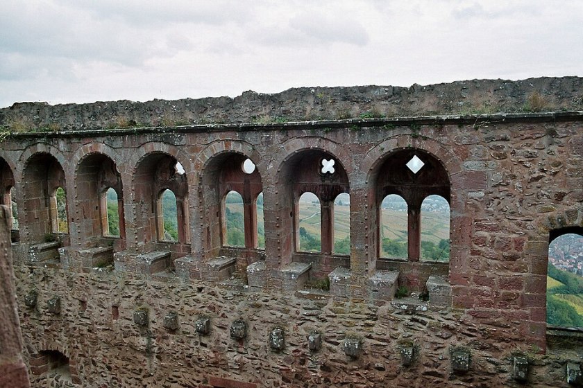 Choć żadnego z trzech zamków ruin nie zdołałem odwiedzić to nie da się nie odczuwać ich obecności. Wyraźne sylwetki spoglądają z wysoka, jakby gdyby wciąż wypatrując zagrożeń czyhających na fortunę familii Ribeaupierre. Jeśli jednak – na podstawie lektury i zdjęć – miała wam polecić jeden z nich to zdecydowanie byłby to zamek Świętego Ulryka, Château de Saint Ulrich. Największy z całej trójki a jego ruiny skrywają ot choćby pięknie wciąż zachowane okna Sali rycerskiej, z zewnątrz biforiowane, wewnątrz z kamiennymi ławami.