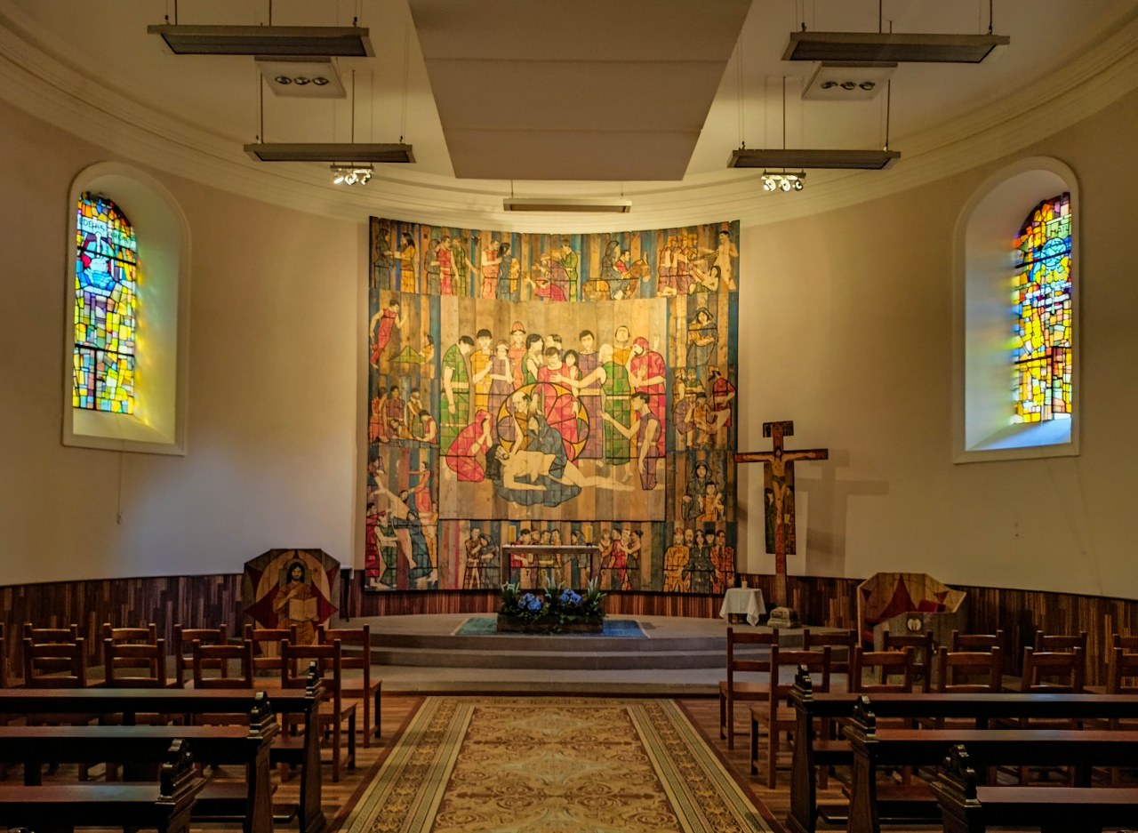 Tym co mnie jednak najbardziej wewnątrz zaskoczyło była kaplica Matki Boskiej, skrywająca w swych wnętrzach współczesny, nie mający jeszcze 10 lat ołtarz-obraz, namalowany na 129 deskach, przedstawiający żywot Maryi.