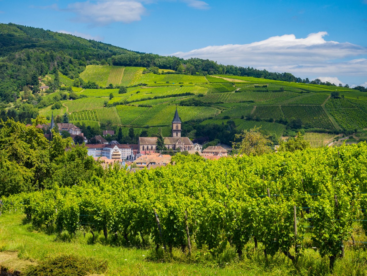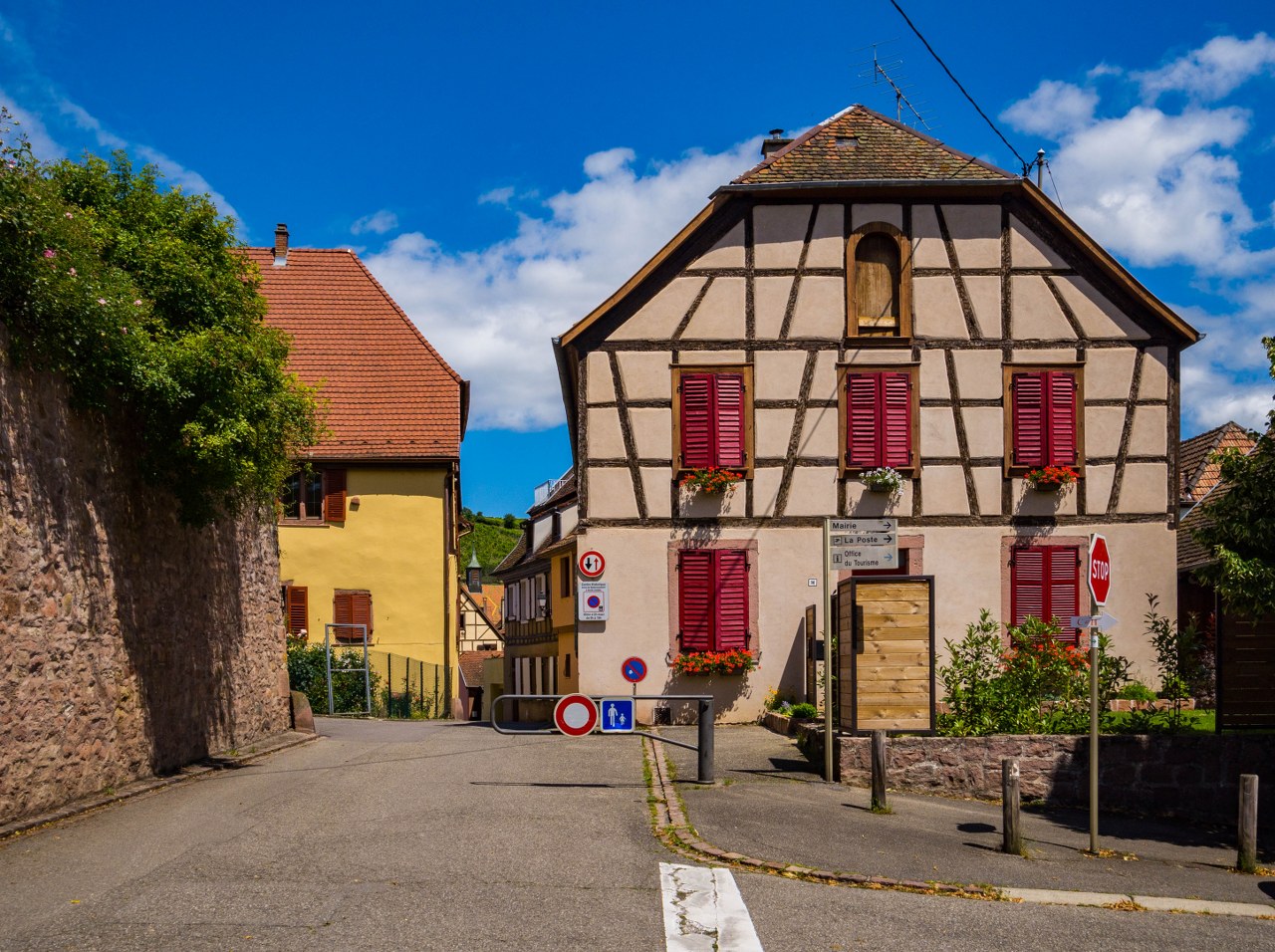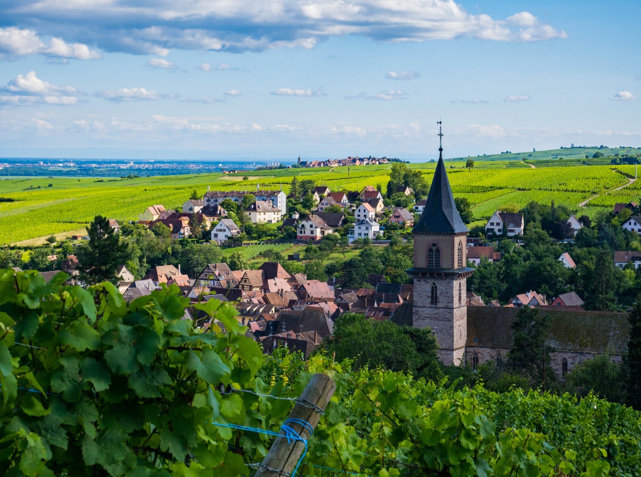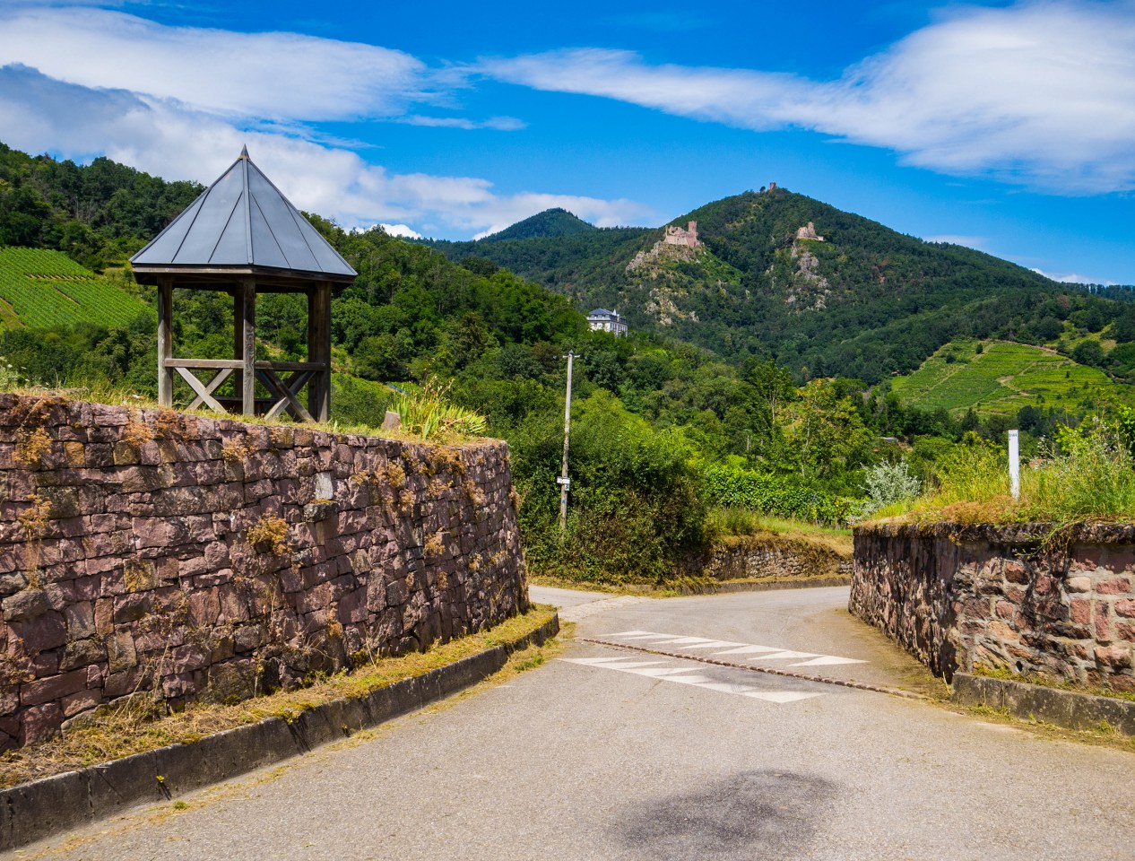 Ribeauville liczy sobie około 5 tysięcy mieszkańców i choć daleko mu do największych miast w Alzacji, to przez stulecia należało do tej grupy, które miały na okolice niemały wpływ. Duża w tym zasługa familii Ribeaupierre, przez wiele lat korzystającej z koneksji na dworze Habsburgów, czerpiącej wielkie zyski z uprawy winorośli i eksploatacji kopalń srebra z pobliskich dolin. Trzy zamki, których pozostałości górują nad miastem są właśnie ich dziedzictwem stanowiąc dziś chyba najbardziej emblematyczny element miejscowego krajobrazu. Dawne warownie dobrze widać choćby z drogi prowadzącej z Hunawihr. Czy to kolejne dwa, zjawiskowe kilometry pośród winorośli przestworu oceanu? Jak najbardziej.