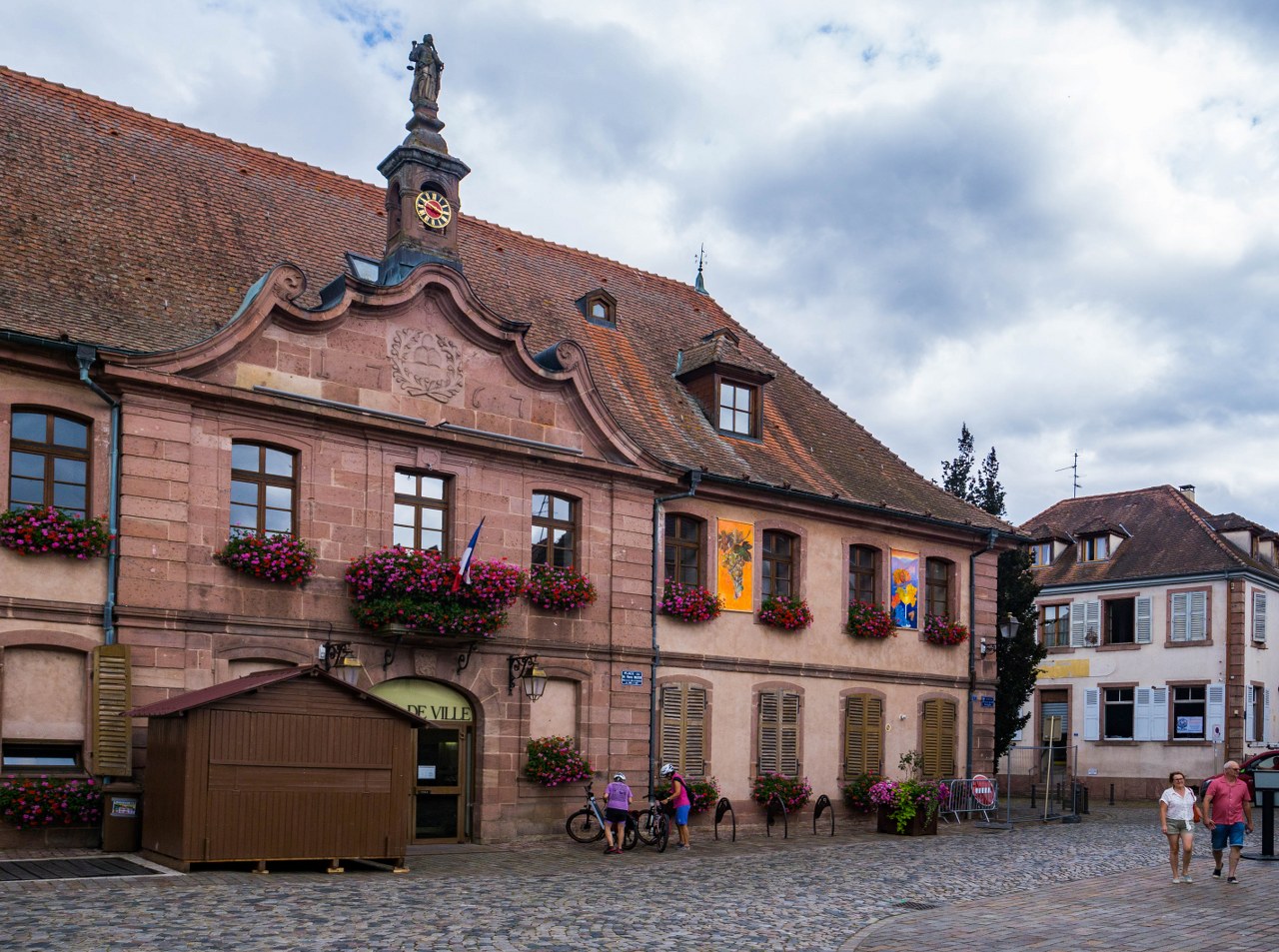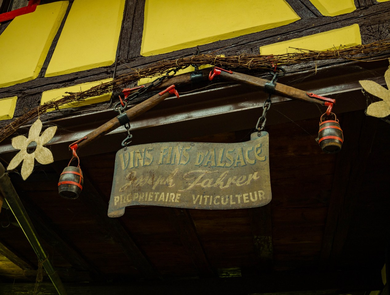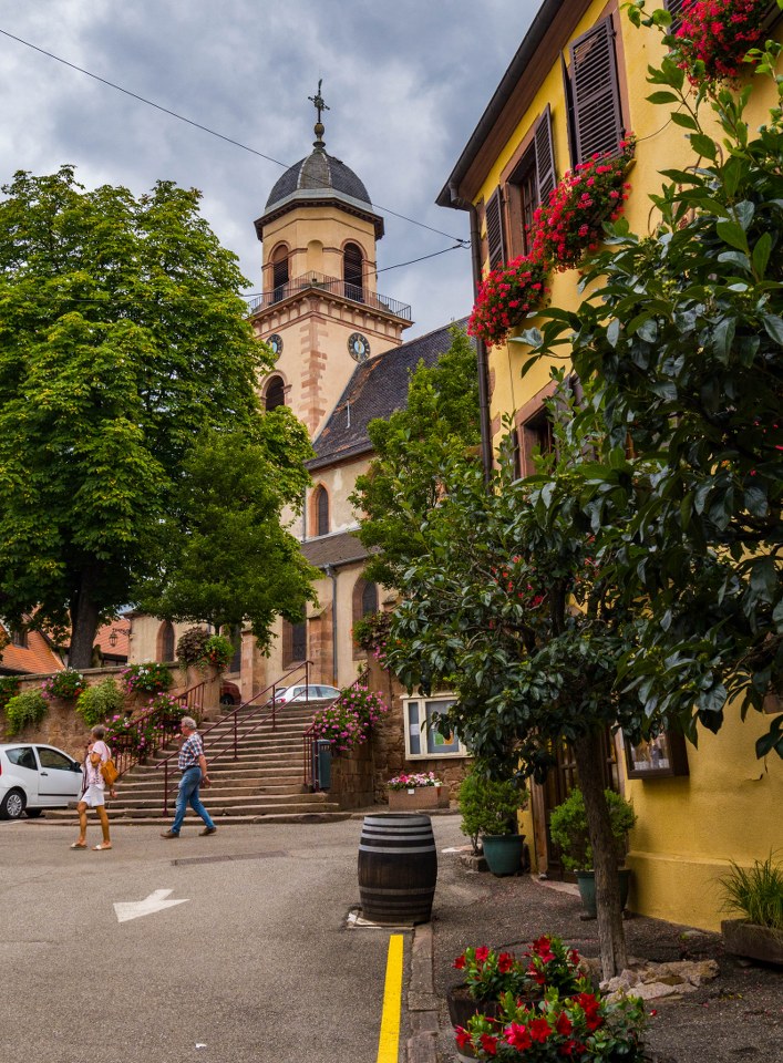 Tak, mamy tu całkiem zgrabne pozostałości po murach obronnych, na ratuszu znajdziecie płytę z herbem książąt lotaryńskich, biała bryła ich dawnej siedziby z daleka przyciąga wzrok a gotycki w proweniencji (acz przebudowany w XIX-wieku) kościół Św. Hipolita góruje nad wsią… ale nie da się ukryć, że to wino gra tu pierwsze skrzypce. Wystarczy chwila spaceru by zdać sobie sprawę, że uprawą winorośli para się tam chyba co druga rodzina. I jest to rzecz godna podziwu.