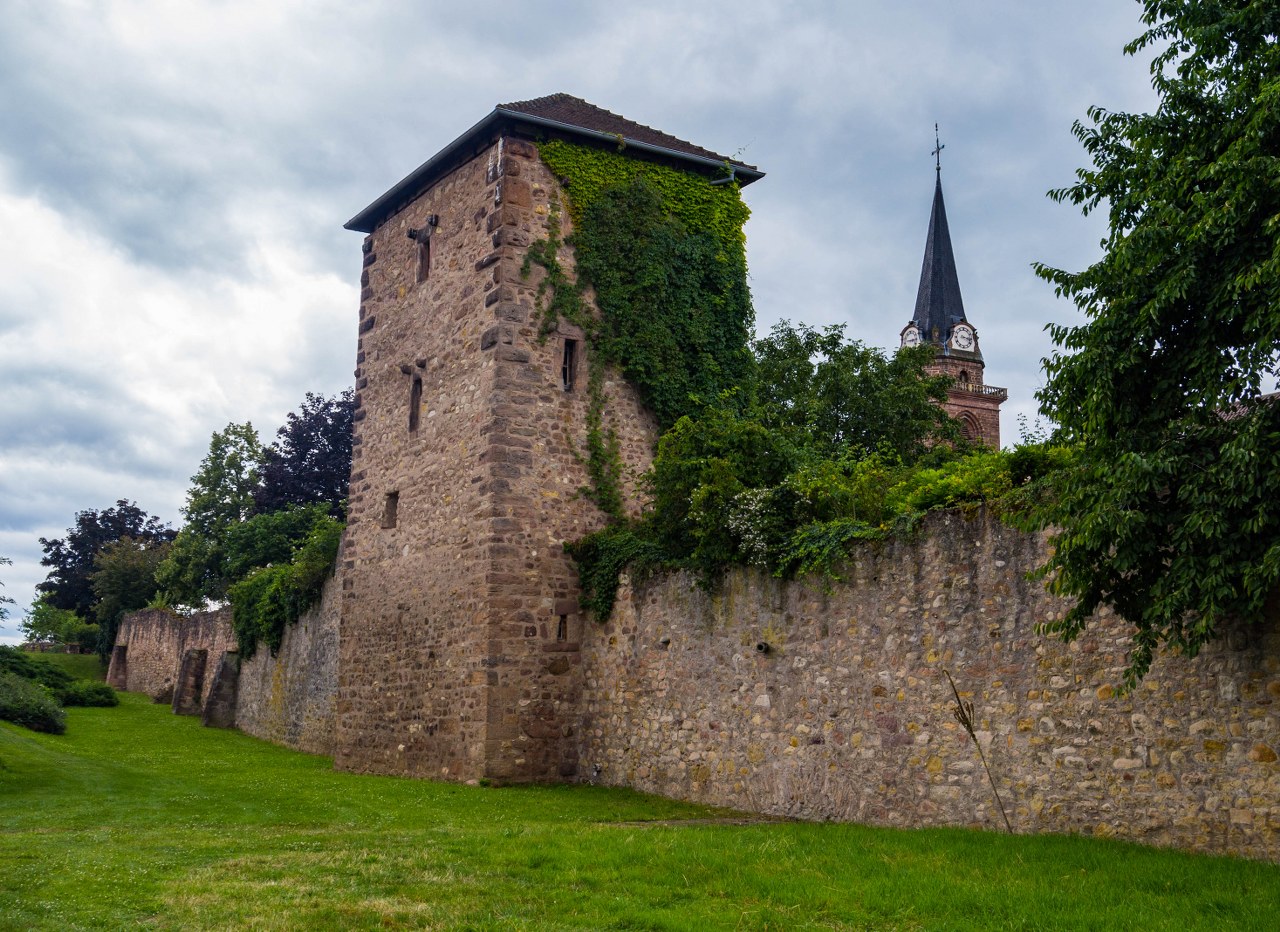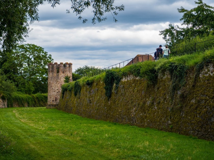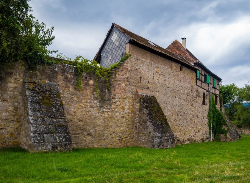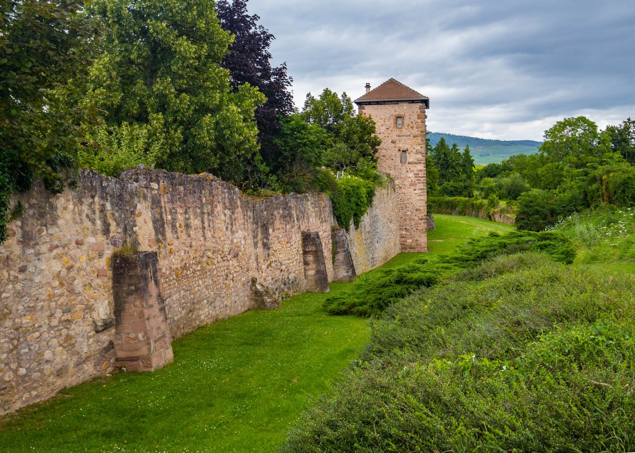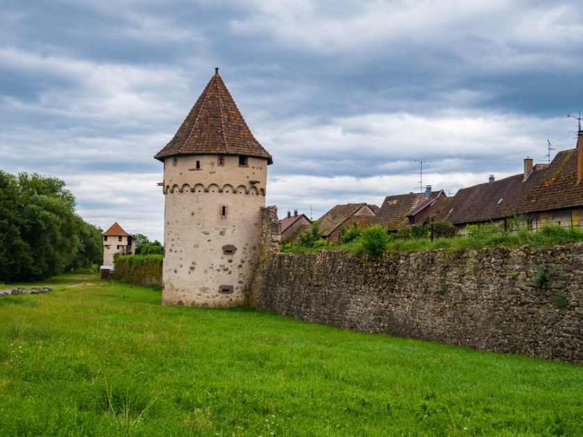 No bo tak, mury są, ale nie byle jakie – jedne z najlepiej zachowanych w caluśkiej Alzacji, długie na niemal 1300 metrów, 9 ocalałych baszt, witająca przybyszów zachodnia brama i przede wszystkim fajnie, ogródkowo-działkowo zagospodarowana sucha fosa. No robi to różnicę!