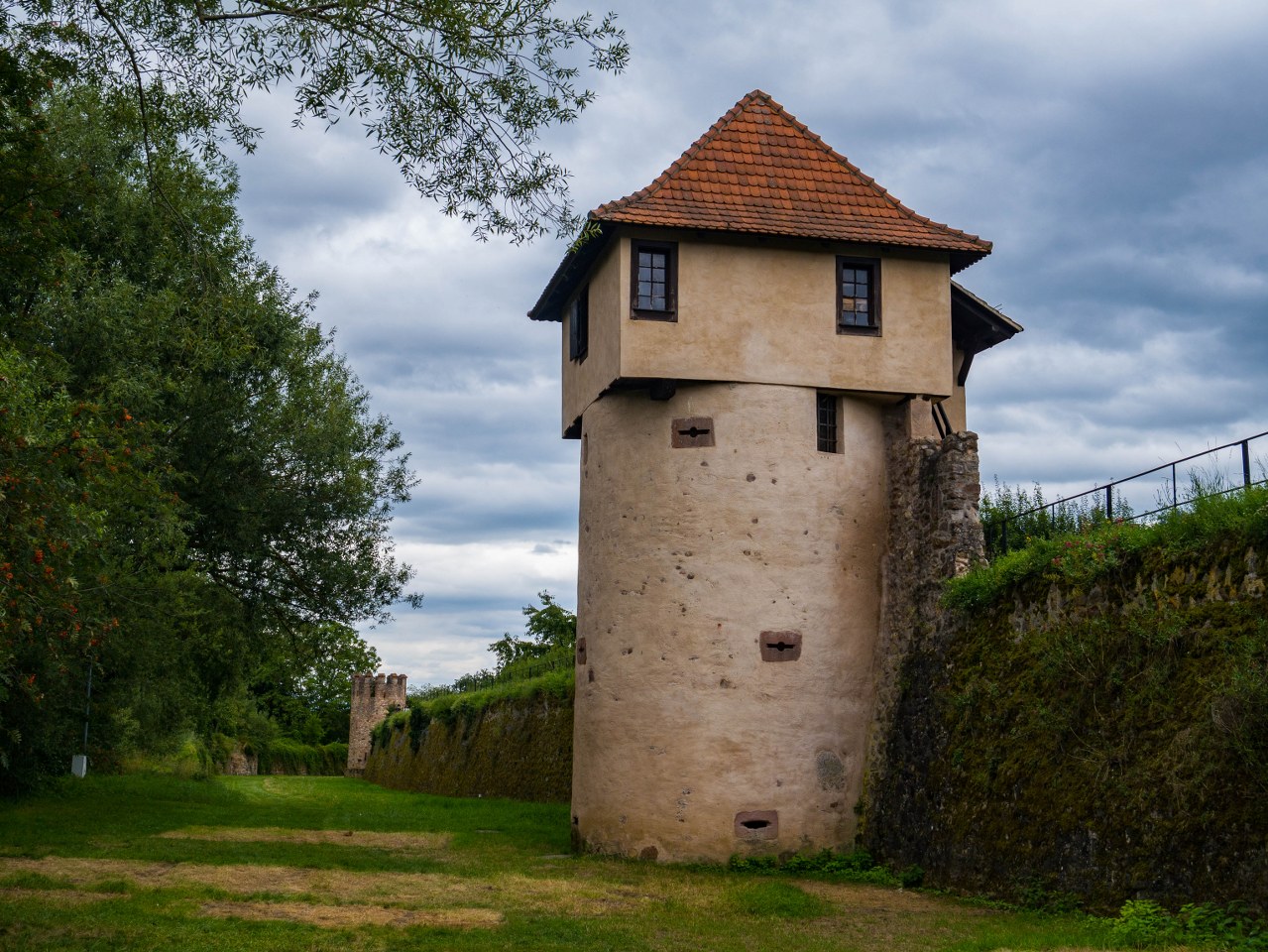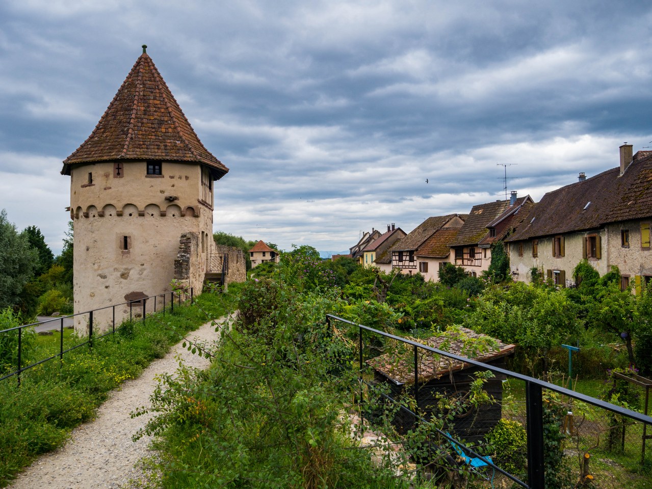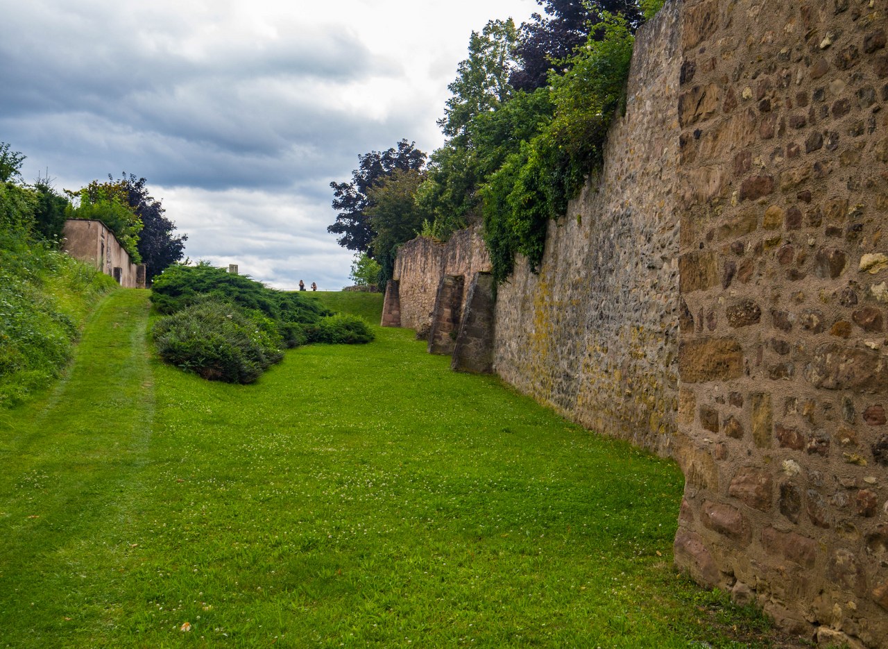 No bo tak, mury są, ale nie byle jakie – jedne z najlepiej zachowanych w caluśkiej Alzacji, długie na niemal 1300 metrów, 9 ocalałych baszt, witająca przybyszów zachodnia brama i przede wszystkim fajnie, ogródkowo-działkowo zagospodarowana sucha fosa. No robi to różnicę!