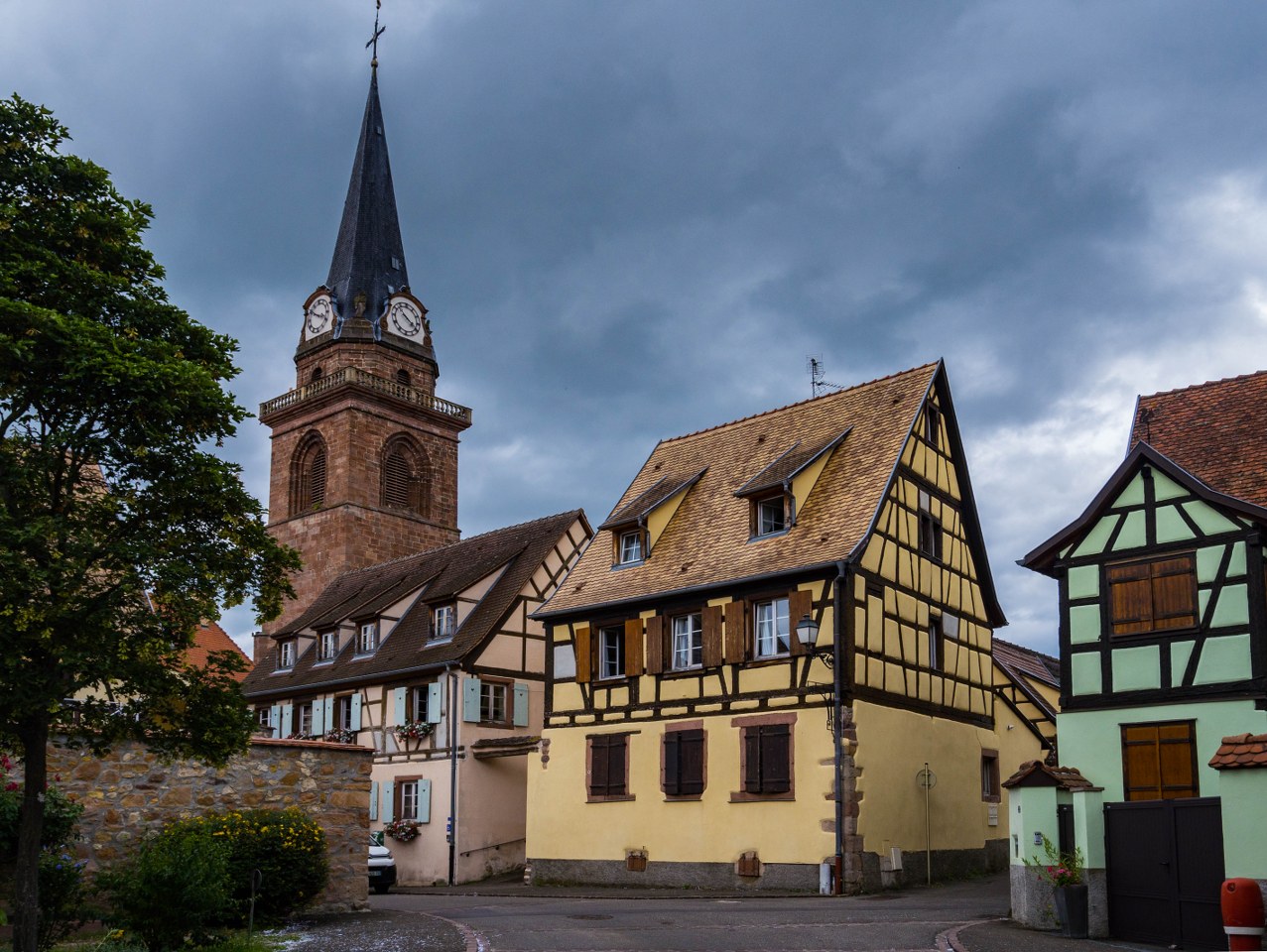A skoro już o Saint-Hippolyte zahaczamy to zróbmy szybki spacer, bo wieś o poranku prezentowała się – niespodzianka – zjawiskowo, dając trochę przedsmak tego co czekało w Bergheim.
