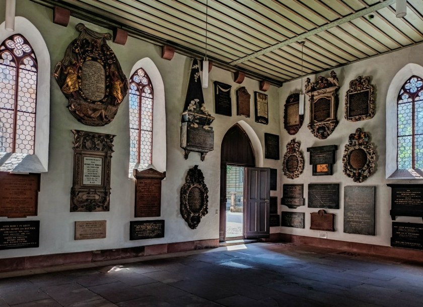 Najważniejsze są tu jednak płyty nagrobne i różnego rodzaju epitafia zasłużonych dla miasta osobistości, w dużej mierze pochowanych pod świątynią. Niezliczone ilości zgromadzonej tu sztuki sepulkralnej to istna kronika miasta, łącząca element estetyczny z historyczno-społecznym.