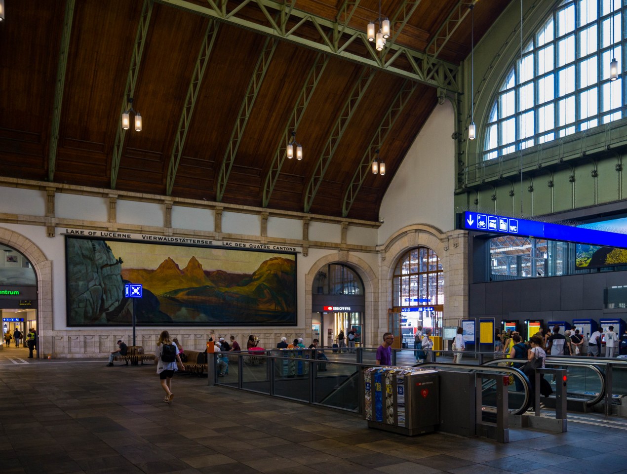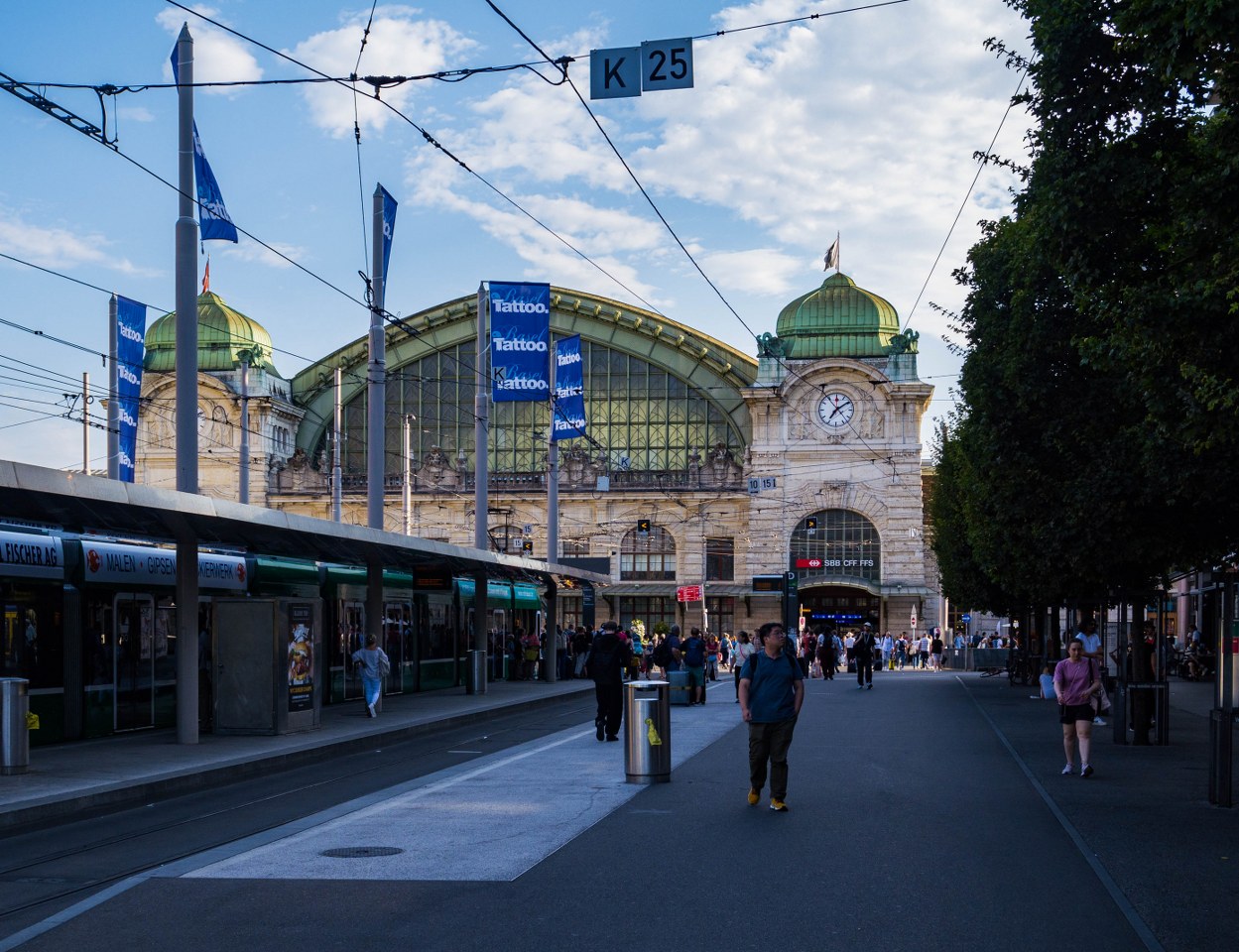 Główny dworzec Bazylei jest budynkiem imponującym, wybudowanym w 1907 roku, zachwyca neobarokową bryłą i bez wstydu mógłby stanąć koło pałaców takiego Wiednia. Mimo wczesnej godziny po sporym holu głównym kręciło się już wiele osób, co przy dziennym przemiale rzędu 140 tysięcy pasażerów nie powinno dziwić.