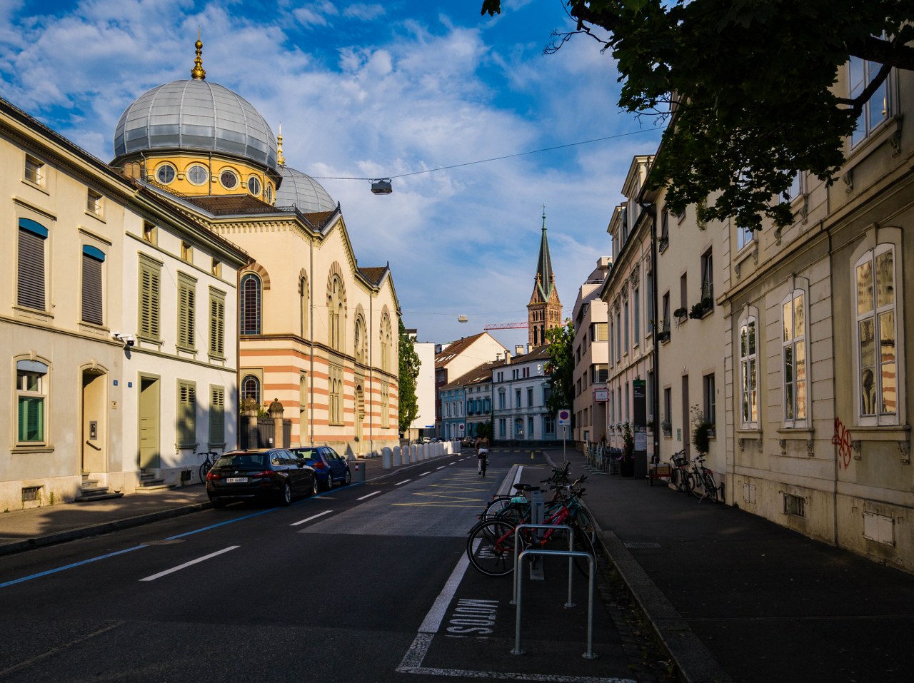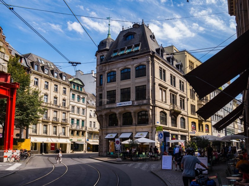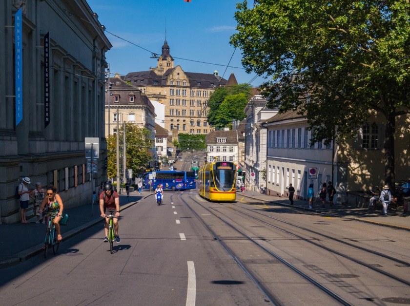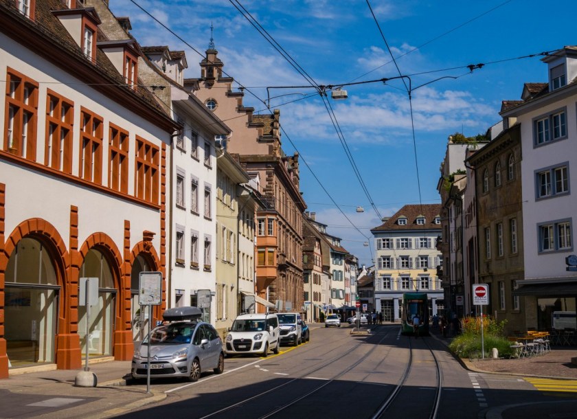 Do nie-do-końca-wielkich odległości dodajmy fakt, że na ulicach królują tramwaje a rowerzyści miną was częściej niż samochody osobowe i przed oczyma pojawia się perspektywa spokojnego spaceru i braku zamartwiania się tym, że auta zepsują najfajniejszy kadr 😀 Tak, Bazylea mocno ogranicza ruch samochodowy w centrum i puste zazwyczaj ulice sprawiają ciekawe, ale i no kurcze piękne wrażenie, kapitalnie mi się nimi spacerowało.