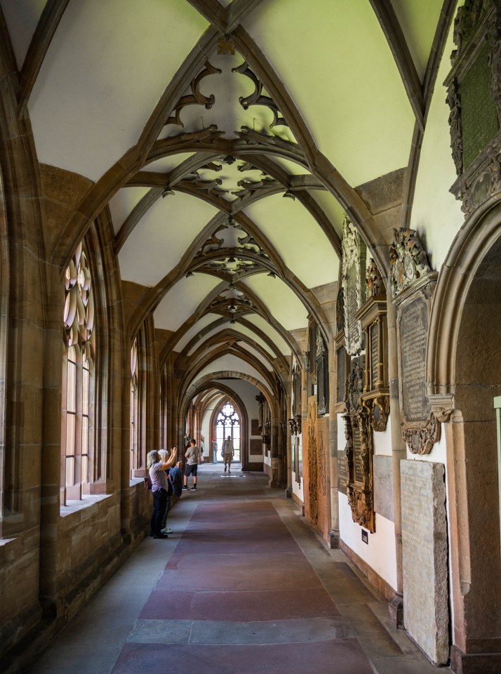 I kiedy myślicie, że teraz zaproszę was do wnętrz kościoła… to nie, jeszcze nie. W pierwszej połowie XV-wieku na przylegającym do świątyni terenie powstał otoczony krużgankami wirydarz, kilka lat później dołączył do niego drugi mniejszy. Piękne to i bogato rzeźbione gotyckie korytarze, pełne nienaruszonych przez lata (nie licząc troskliwej konserwacji) sklepień o bardziej wymyślnych niż normalnie elementach.