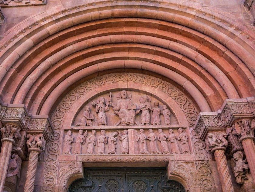Nic to jednak przy portalu północnym, bodaj najwspanialszym przykładzie romańskiej sztuki w Szwajcarii. Przed wami Portal Gallusa, pochodzący z końcówki XII-wieku, ocalały z trzęsienia ziemi, zachowany niemal całkowicie w oryginale. Co to jest za kawał rzemiosła, sztuki i artyzmu to ja nawet nie. Niesamowicie bogaty w detale, symbole, postacie ZACHWYCA!