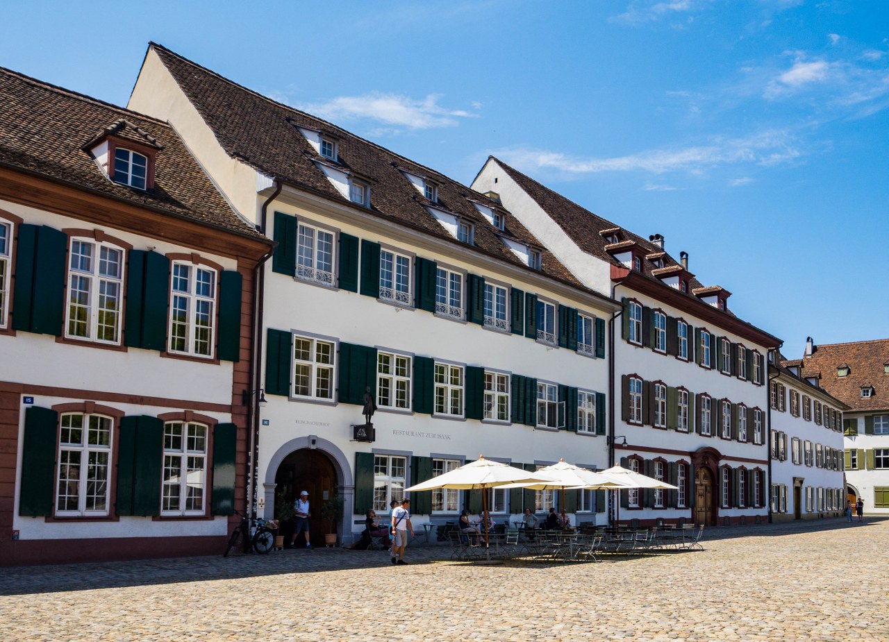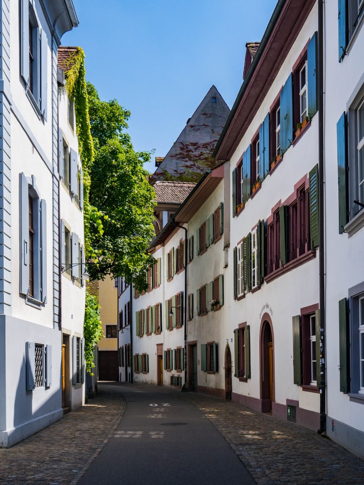 Wokół katedry rozciąga się plac, zwany jakżeby inaczej Katedralnym. Wraz z nim zaczyna się bazylejskie królestwo kolorowych okiennic, które wespół z białymi zazwyczaj kamienicami tworzą klimat Starego Miasta. To fakt, nie opinia. Sieć węższych uliczek ciągnących się na północny-zachód to przykład tego, ile zwykłe okiennice potrafią narobić szumu. Szkoły, biblioteki, muzea, domy mieszkalne – wszystkie dumnie wznoszące się na kilka pięter, zakończone dwuspadowymi dachami pokrytymi brązowymi dachówkami. Gotyckie, renesansowe, barokowe, zakończone lukarnami tak zwykłymi jak i efektownymi. Tak różne a jednak połączone białymi fasadami i kolorowymi okiennicami.