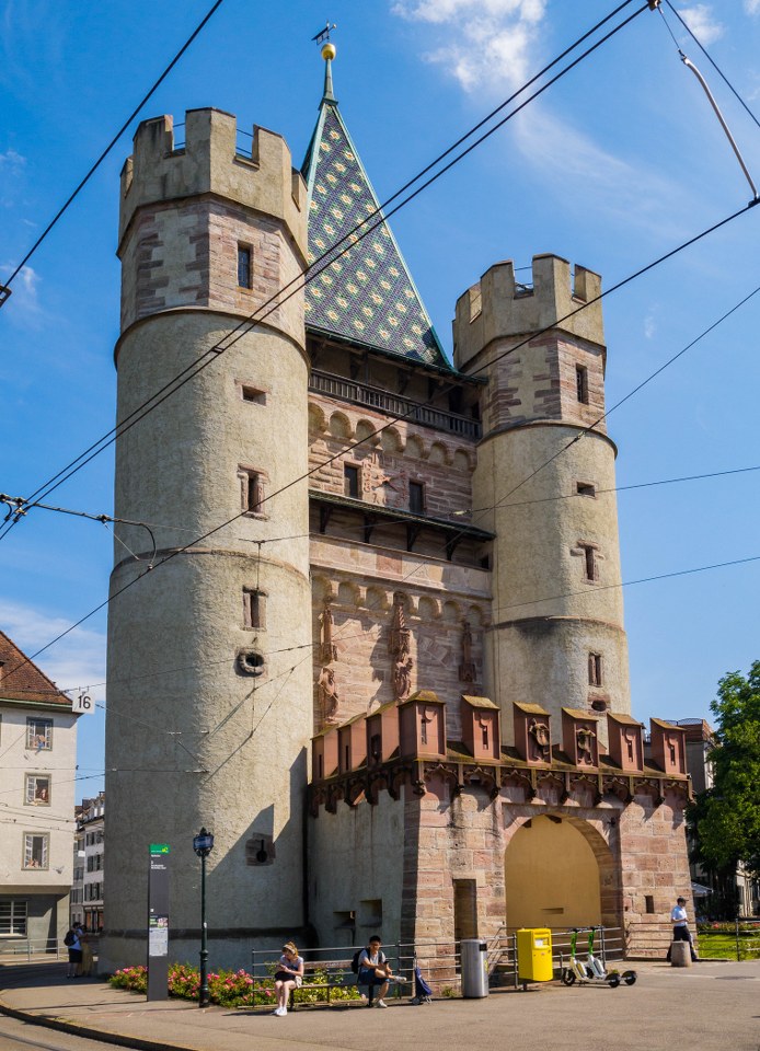 Zabytkowa, najstarsza w mieście zabudowa ciągnie się do linii dawnych murów miejskich, za którą rozpościera się Bazylea młodsza, ale z tego co rzuciłem okiem całkiem ładna. Jednym z najbardziej imponujących, zachowanych do dziś elementów dawnych fortyfikacji jest Spalentor, jedna z trzech ocalałych bram miejskich zewnętrznej linii murów. Mury wewnętrzne niemal całkowicie w XIX-wieku rozebrano, zewnętrzne ocalały we wspomnianych bramach i fragmencie murów na wschodzie, nieopodal bramy Św. Albana. Wracając jednak do Spalentor to trzeba przyznać, że jeśli tak prezentowała się choć część zachodnich murów to musiało tam być tak jakby luksusowo, świetne robi ona wrażenie. Posiadająca dwie wieżyczki, szereg gotyckich zdobień oraz rzeźbę Madonny, czy w końcu główna wieża bramna z dwoma, wspartymi na arkadowych fryzach galeriami. Sztosik.