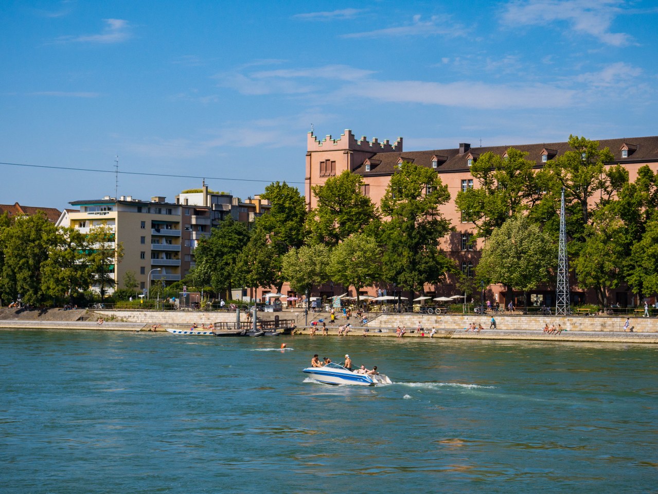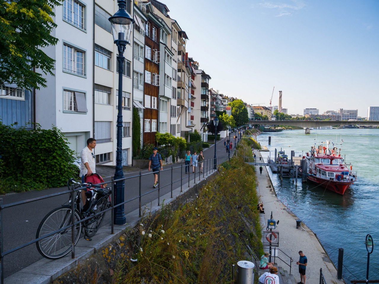 Po takim łazęgowaniu przyszła pora na krótki odpoczynek nad Renem, Słońce było już w takim miejscu, że wysokie budynki na lewym brzegu kładły cień na nadrzeczną promenadę i w spokoju można było odetchnąć. Popijając zimne pszeniczne piwo. Mając dłuższą chwilę warto lustrować taflę rzeki szukając śmiałków, którzy wyposażeni tylko w specjalną torbę Wickelfisch pokonują rzekę w sposób taki jaki pewnie sami byśmy chcieli, ale się boimy: wpław.