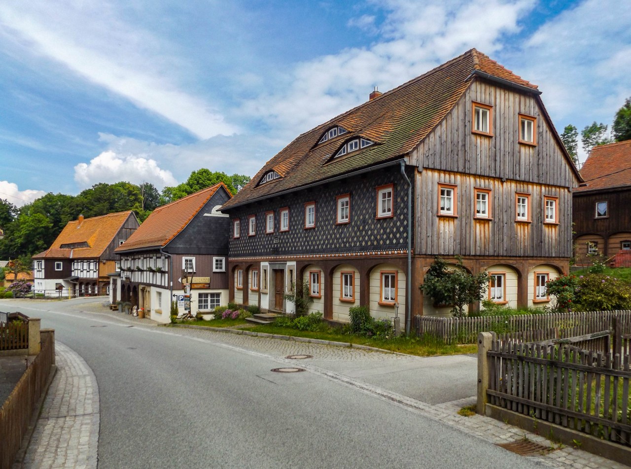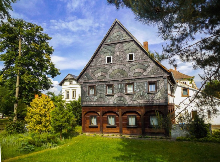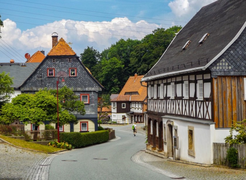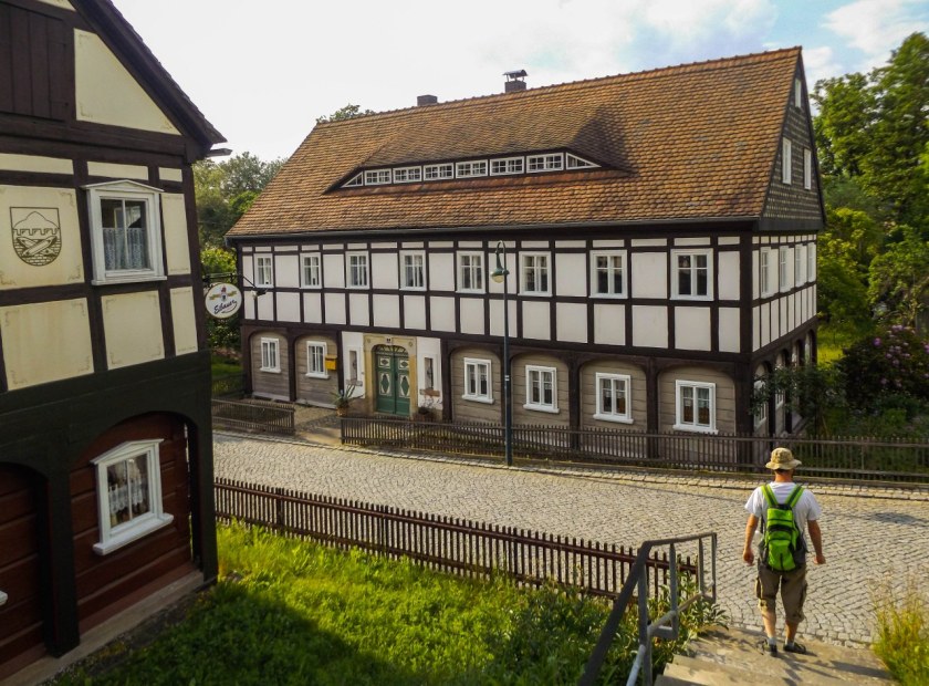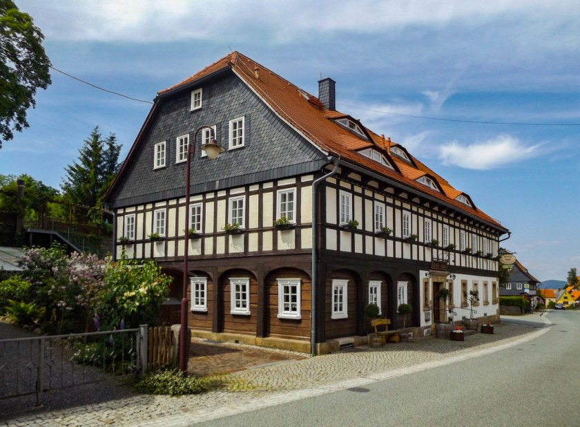 A wrócić powinien już dawno bo to jak bardzo Waltersdorf i Großschönau są pomijane podczas opisywania górującego nad nimi Luža jest skandalem. Miejscowości te zasługują na naszą uwagę i nie powinny być li tylko parkingiem i szybkim przystankiem w drodze na najwyższy szczyt Gór Łużyckich. Sam Waltersdorf (obok Cunewalde i Obercunnersdorf) jest spełnieniem marzeń każdego wielbiciela domów przysłupowych. Długa na bez mała 4 kilometry wieś pochwalić się może olśniewającą kolekcją przeszło 300 (a 200 wpisanych do rejestru zabytków!) emblematycznych dla polsko-czesko-niemieckiego pogranicza domów.