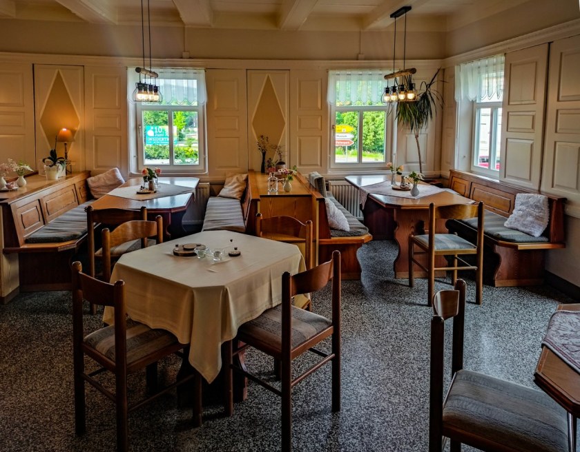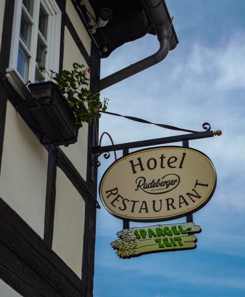 A po(między) zwiedzaniem chodziliśmy na małe co nieco odkrywając przy okazji, że i w Niemczech może obowiązywać coś na wzór siesty, i nie mówię tu o mittagsruhe. No było już 17 i okazało się, że obiadów nie serwowano, można za to było wszamać deser… albo śniadania. Plus zupę. No i cóż, kto by nie zjadł sałatki ziemniaczanej i gotowanych kiełbasek na obiad? 😀