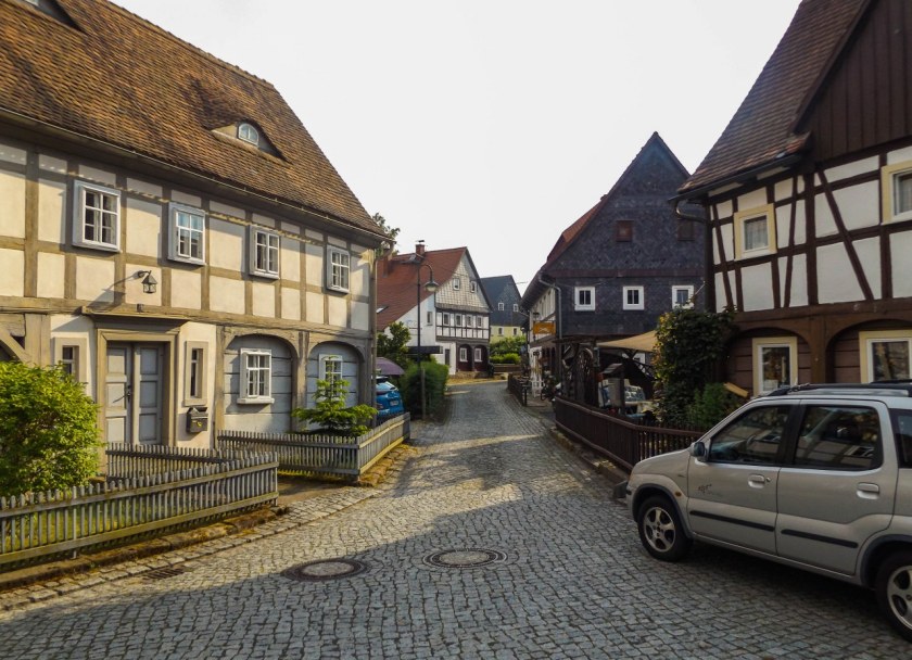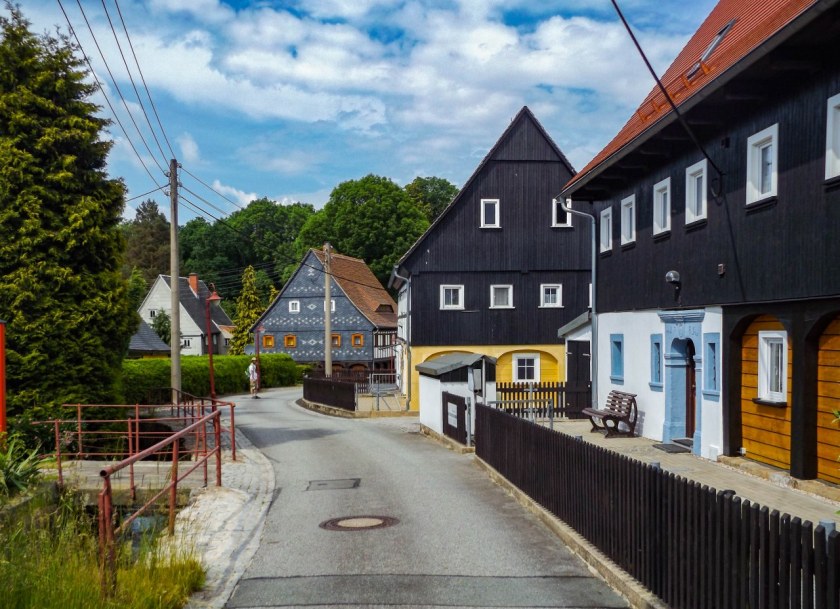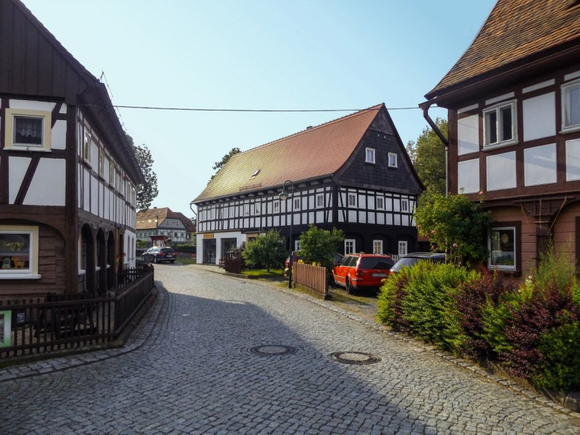 Spacer ulicami (choć w zasadzie prawie jedną, długą ulicą Główną) to jak wizyta w sklepie z zabawkami/słodyczami/wstawcie coś co wam pasuje. To jedno z tych miejsc, gdzie górnołużyckie dziedzictwo powstałe z niezwykle estetycznej i praktycznej fuzji myśli zachodnio i środkowoeuropejskiej przetrwało w formie nad wyraz budującej i cieszącej oko. Dodajmy do tego miasteczko Großschönau, równie fajne, kontynuujące tradycję domów przysłupowych, będące naturalnym przedłużeniem sąsiedniej wsi, mogące pochwalić się jeszcze bardziej niezwykłym tekstylnym dziedzictwem oraz urokliwą, fotogeniczną rzeczką Mandau i mamy plan na post scriptum w temacie Luža.