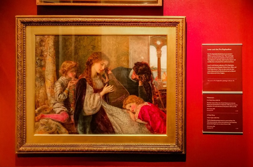 Większą część kolekcji Levera znajdziecie w ufundowanej przez niego Galerii Sztuki, nazwanej na cześć jego zmarłej żony, lady Elisabeth. Bardzo lubię takie miejsca, pełne arcyciekawych prac acz dzięki byciu na uboczu całkowicie wolne od tłumów, pozwalające w skupieniu i spokoju odkrywać. To dobre słowo, bo większość kolekcji to rzeczy przeciętnemu zjadaczowi chleba nieznane. Cudowna jest kolekcja malarstwa wśród której prym wiodą Prerafaelici. Podczas naszej wizyty mieliśmy szansę trafić na czasową wystawę o brytyjskich (głównej) pejzażystkach, która w dużej mierze traktowała też o pozycji kobiet w sztuce. Dużo dobra.