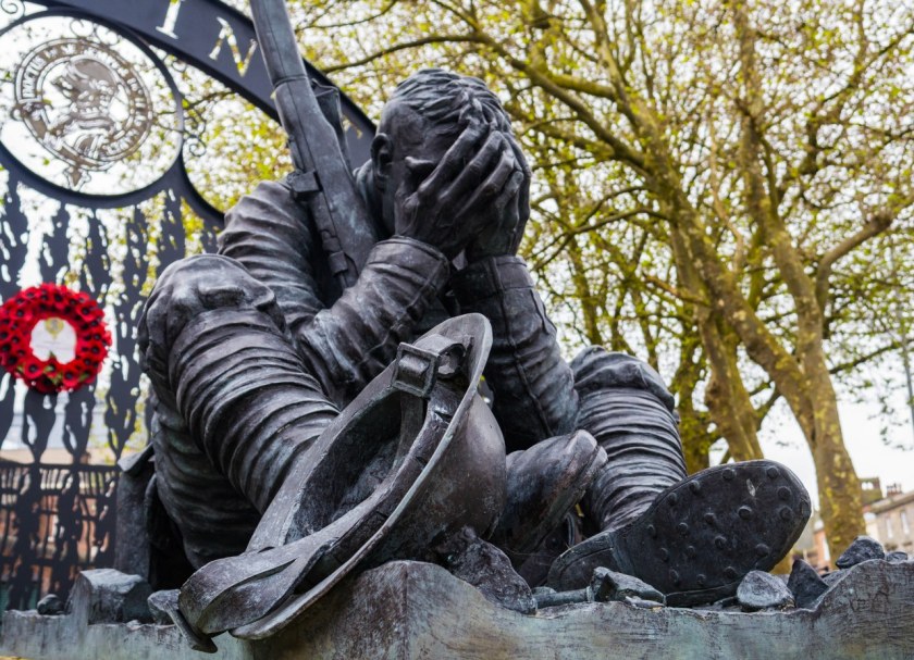 Pamięć o poległych (oraz wszelkich innych ofiarach obu Wojen Światowych) jest w Wielkiej Brytanii niezwykle silna i to właśnie na wschodnim brzegu rzeki Mersey, 5 km na północ od Port Sunlight, w Birkenhead odkryliśmy niewielki, ale chyba najbardziej poruszający pomnik dotykający tej kwestii. Jeśli będziecie mieć możliwość zajrzyjcie proszę przed bramę Old Boys of Birkenhead Institute gdzie przy słowach wiersza „Daremność/Futility” Wilfreda Owena postać wycieńczonego żołnierza chowa twarz w dłoniach. Mało który wojenny pomnik tak bardzo trafia w feelsy.