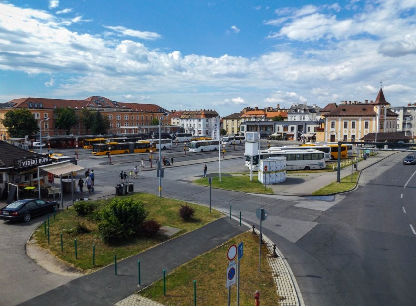 Przybywając do Győr pociągiem lub autobusem pierwsze wrażenie można mieć dość osobliwe, tym bardziej jeśli wysiądziemy na dworcu autobusowym, wielkim typowo środkowoeuropejskim placu przenoszącym w czasie na przełom XX i XXI stulecia. W dali majaczą zadbane kamienice, ale klimat zdecydowanie jest oldskulowy – w tamtejszych budkach zjecie przeto pysznego i totalnie olbrzymiego langosza.