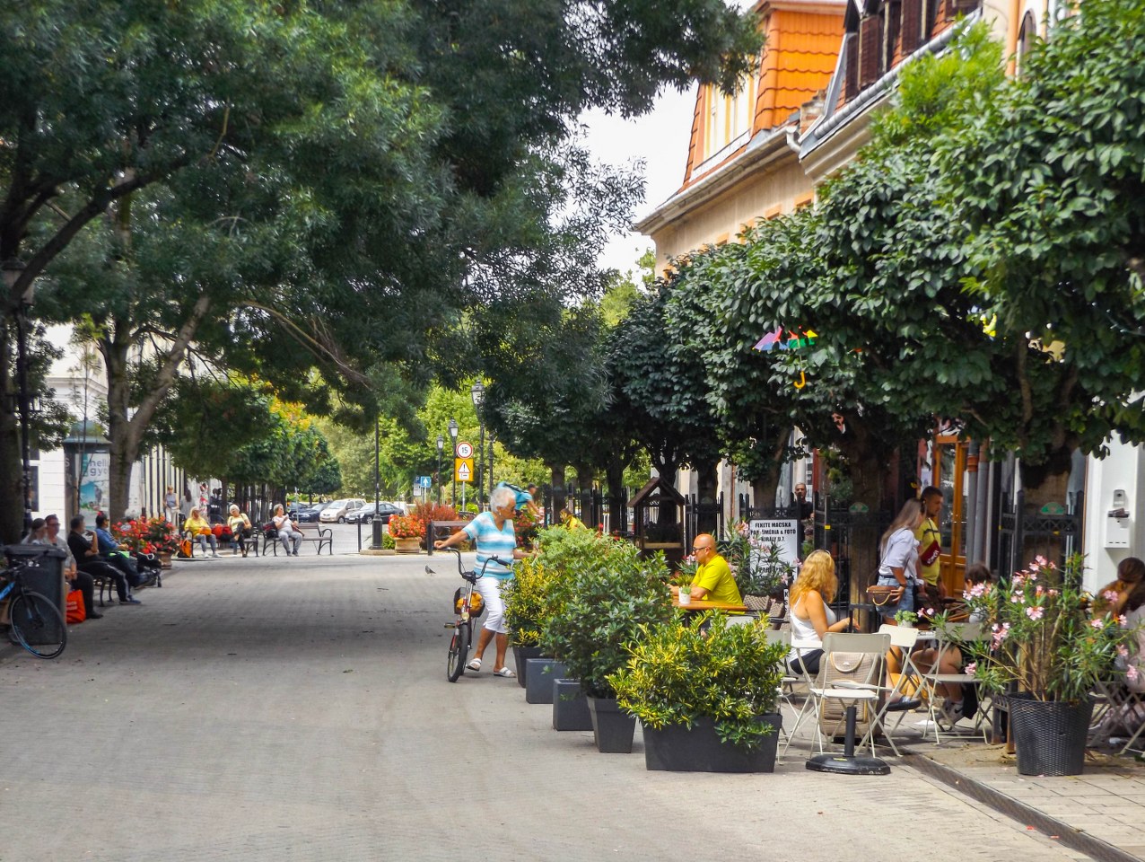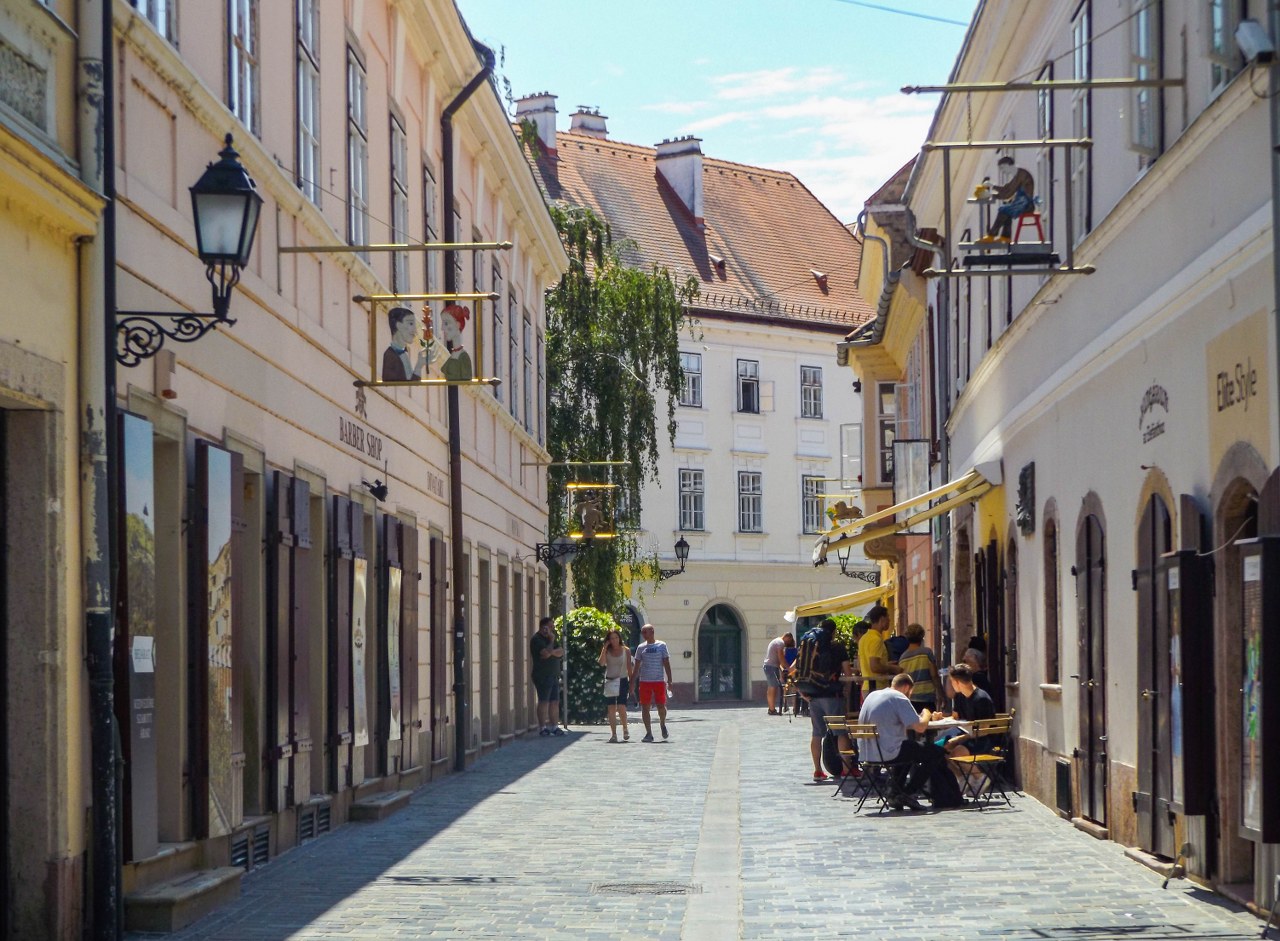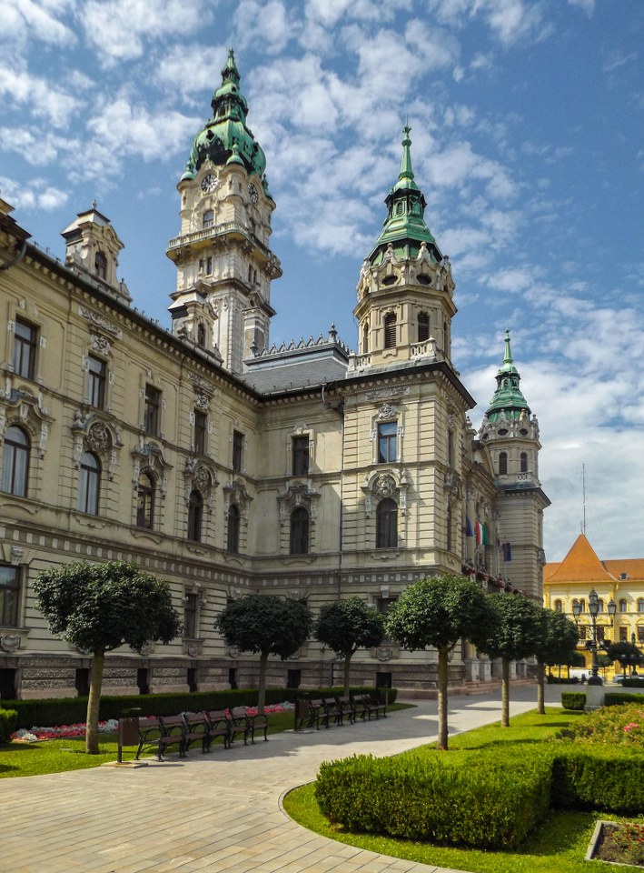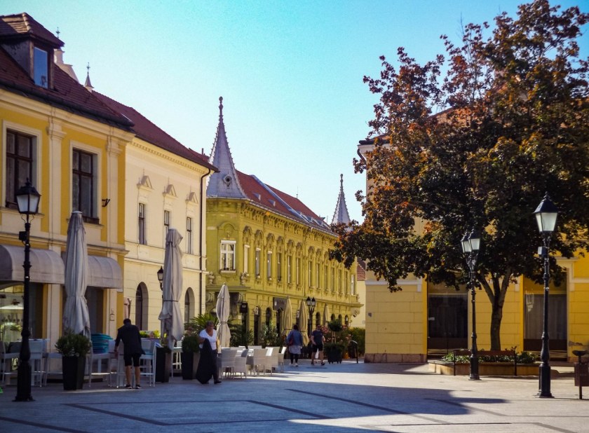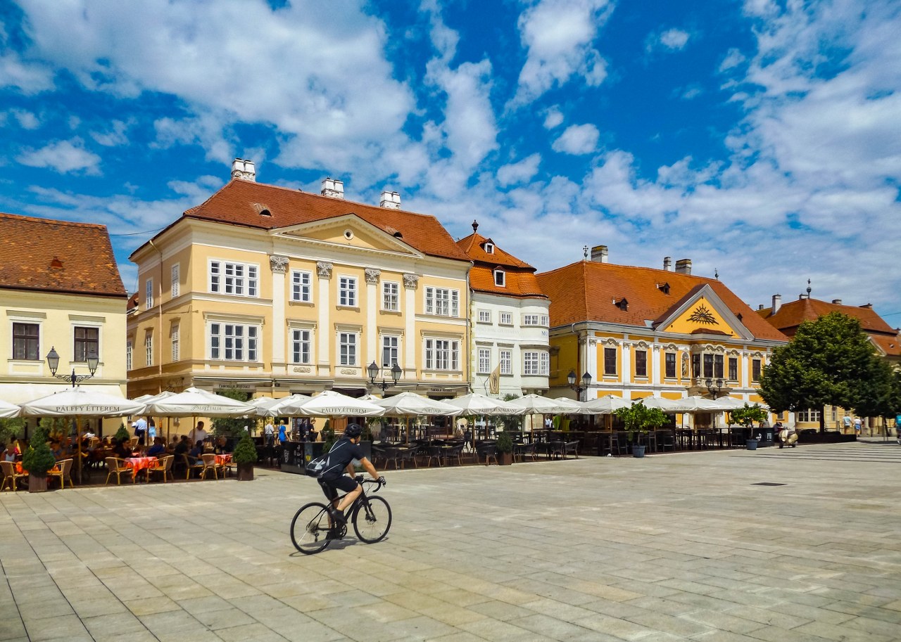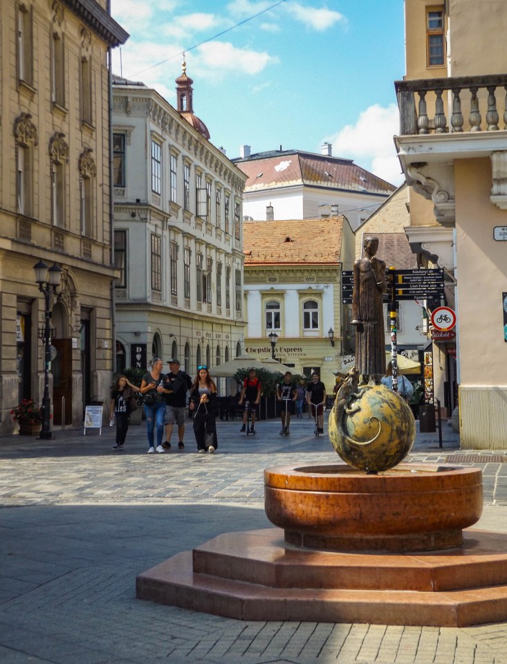 Győr jest szóstym co do wielkości miastem na Węgrzech, lecz dzięki niskiej zabudowie Śródmieścia zupełnie tego nie czuć. Kamienice i pałace o pastelowych barwach, miłych oku fasadach z pięknymi wykuszami (z nadreprezentacją takich z narożnymi oknami), ozdobione uroczymi i pomysłowymi szyldami reklamowymi sprawiają, że klimat jest tam tak małomiasteczkowy i relaksujący, że warto się nie spinać i dać ponieść tamtejszym uliczkom.