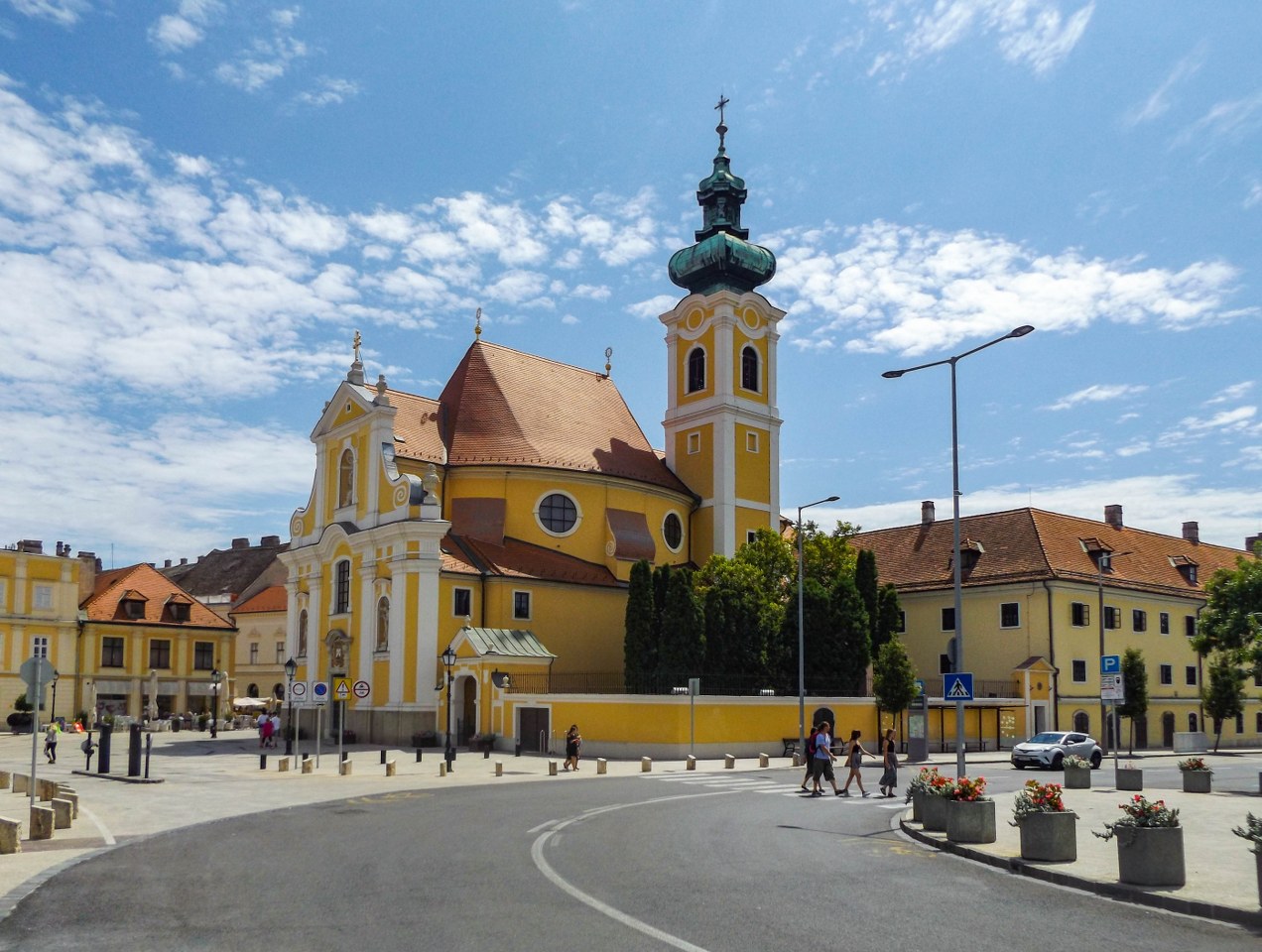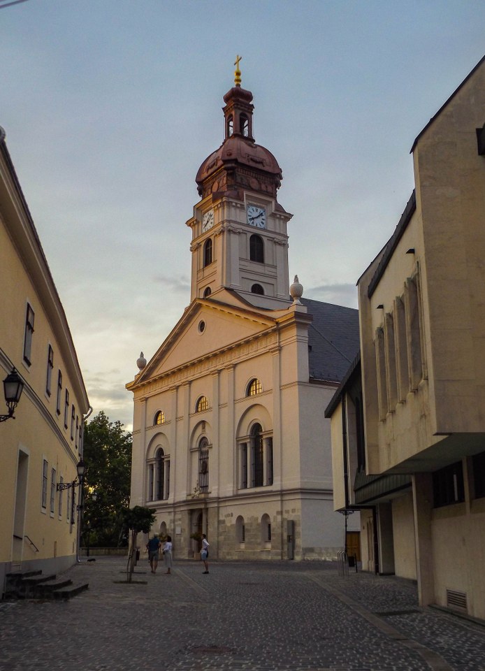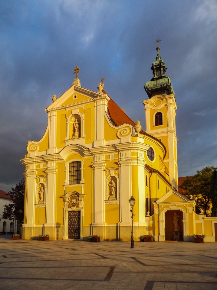 Nie można spaceru sakralnego zacząć w innym miejscu. Najstarszy kościół miasta, a także miejsce spoczynku jednej z najważniejszych węgierskich relikwii, czaszki Świętego Władysława, patrona Węgier. Historia świątyni była burzliwa jak tylko można by to sobie wyobrazić. Z początku romańska później gotycka finalnie przyodziana głównie w szaty barokowe ucierpiała podczas każdego przewalającego się przez miasto konfliktu, od najazdu Mongołów i Czechów, przez walki z Turkami czy Napoleonem po naloty z czasów II Wojny Światowej. Za każdym razem prze/odbudowywana zachowała do dziś fragmenty świątyni romańskiej i gotyckiej, nie da się jednak ukryć, że to barok gra tam pierwsze skrzypce.