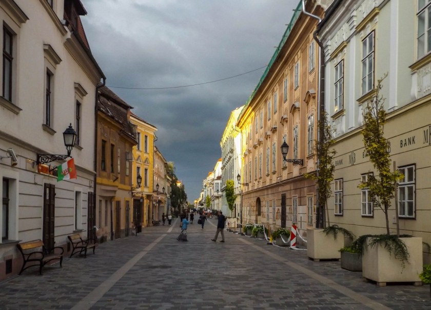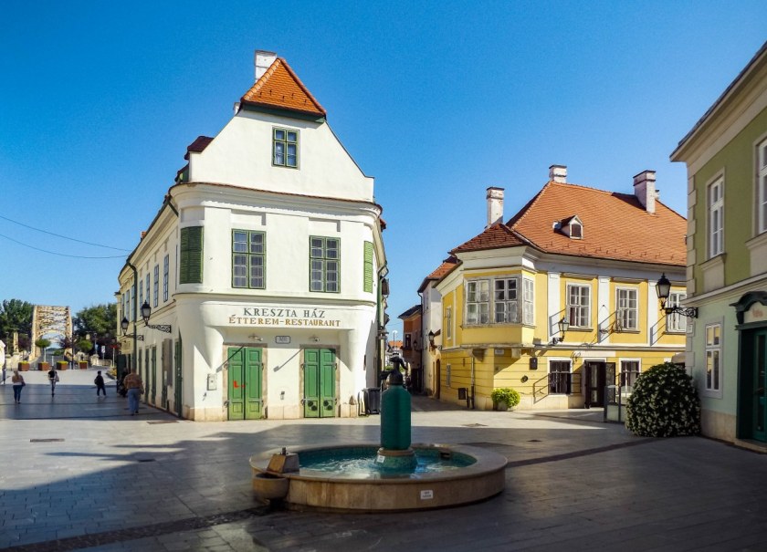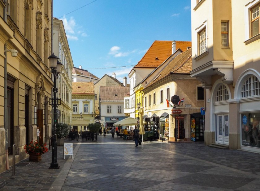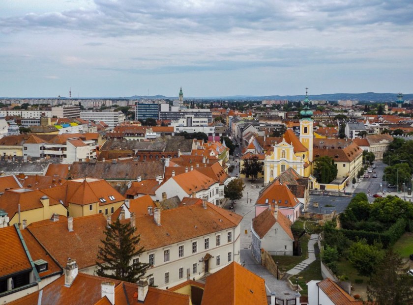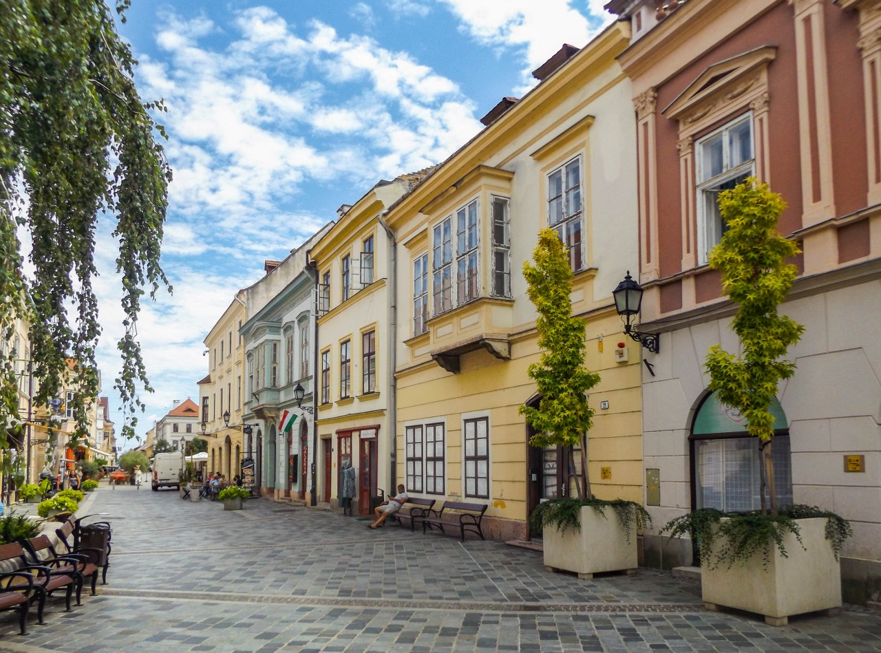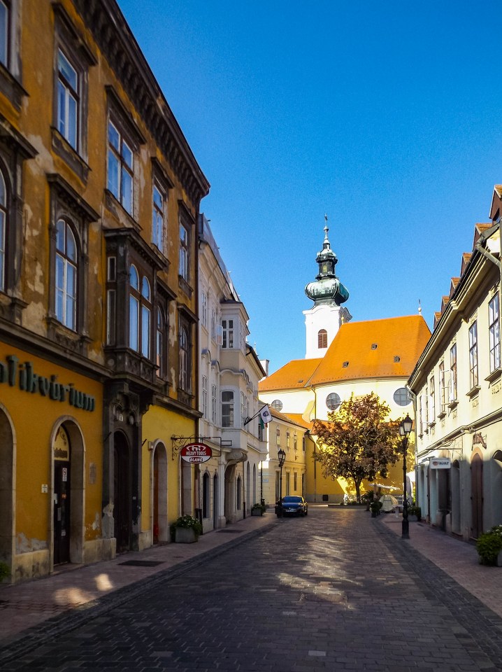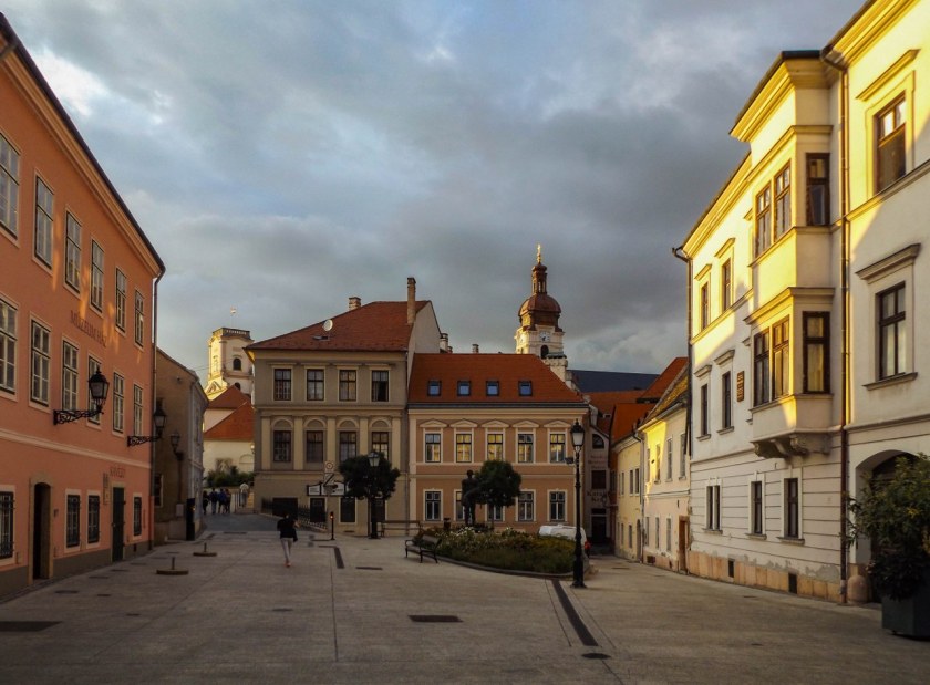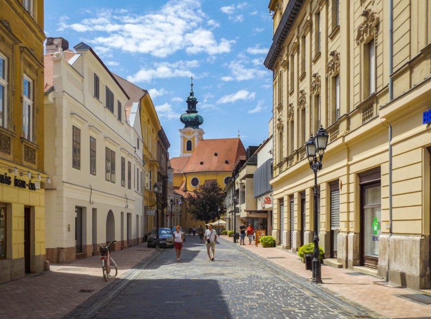 Ziemie te atakowali tak Czesi jak i Mongołowie a przez wiele dziesięcioleci stanowiły one granicę między cesarstwem Habsburgów a Imperium Osmańskim co rzecz jasna miało swoje konsekwencje, m.in. wielki pożar z 1566 roku kiedy to spłonęła spora część miasta co pociągnęło za sobą budowę nowoczesnych bastionowych fortyfikacji oraz otworzyło drogę do przebudowy centrum w stylach renesansowym i później barokowym. I to barokowa twarz nadana Śródmieściu do dziś jest jego wizytówką i nie bez przesady określiłbym ją jako jedną z najładniejszych nie tylko na Węgrzech, ale i na całych postkaiserowskich ziemiach.