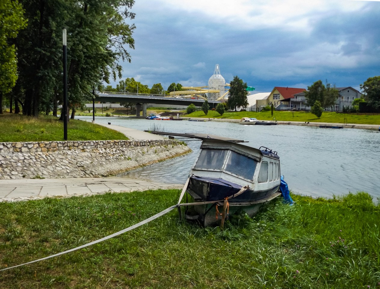 Miasto trzech rzek, tak zwykło się nazywać Győr i kurczę, nie chcę wyjść na marudę, niszczyciela dobrej zabawy, ale wydaje mi się, że jest to określenie trochę na wyrost i bardziej chłyt marketingowy 😀 Na poziomie Ráby i Dunaju Moszońskiego, spotykających się poniżej wzgórza pałacowego wszystko gra i nie ma się do czego przyczepić, ale jednak Rabca tak trochę na doczepkę występuje w tej opowieści, wijąc się na obrzeżach miasta w postaci wpadającego do Dunaju kanału.