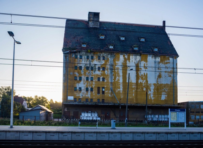 Jednym z minusów nieposiadania prawa jazdy jest brak elastyczności i pełnej kontroli nad kierunkami jakie chciałoby się podczas podróży wybrać. Będąc w tym przypadku skazanym na pociąg POLRegio musiałem liczyć się z wczesną pobudką i skorzystaniem z pierwszej możliwej ciuchci – siatka połączeń bywa bezlitosna, lubi kilkugodzinne luki i na kolejne połączenie musiałbym czekać prawie dwie i pół godziny. Dlatego już parę minut po szóstej rano opuściłem podgryfińskie Pniewo i ruszyłem w dalszą podróż. Niespełna 35 kilometrów na południe, przy akompaniamencie wschodzącego Słońca stacja Chojna wita wielkim, odrapanym elewatorem zbożowym i niepozornym budynkiem dworca. Poranna pora niesie za sobą ciszę i pustki na ulicach. Ciężko sobie wyobrazić, że wylądowaliśmy w mieście, które przez jakiś czas przed wiekami było nawet stolicą (a później kilkukrotnie siedzibą rządu) brandenburskiej Nowej Marchii i którego zabytki dokładają piękną cegiełkę do <badum tss> Europejskiego Szlaku Gotyku Ceglanego. Poznajmy się bliżej.