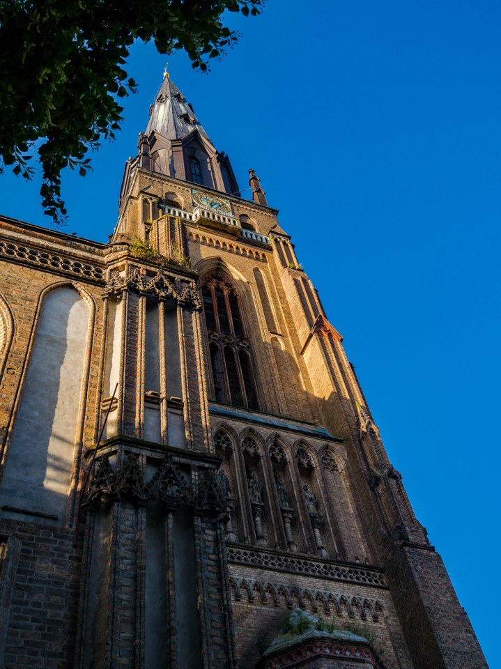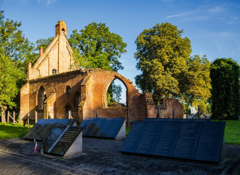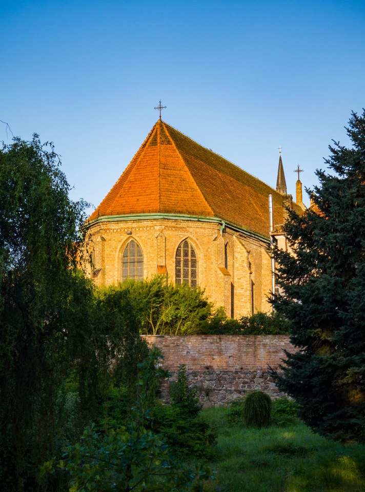 I ach, cóż to, ale cóż to jest za widok! Potężna, jedna z największych dziś w Polsce gotyckich świątyń, z jedną z najwyższych wież kościelnych w kraju, wznosi się nad zielonym placem i trudno uwierzyć, że jeszcze kilka dziesięcioleci temu był to wielki, niepewny swej przyszłości szkielet. Szkielet, który jakimś sposobem zwrócił uwagę młodego Larsa von Triera, który w 1991 roku, wraz z ekipą filmu „Europa” pofatygował się do Chojny by w ówczesnych ruinach nagrać jedną ze scen swego dramatu.