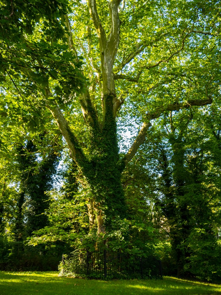 Olbrzym nie bawi się w półśrodki i w co najmniej kilku kategoriach jest w ścisłej krajowej czołówce. Jest najgrubszym platanem klonolistnym w Polsce (przeszło 1100 cm obwodu jest najpewniej zasługą zrośnięcia się trzech osobnych ongiś pieni) co aktualnie daje mu też pierwszeństwo wśród wszystkich drzew w naszym kraju! Do tego niebagatelna wysokość niemal 35 metrów i przeszło 300 lat na karku słojach to nie w kij dmuchał. I co najciekawsze, pośród innych niemniej imponujących drzew Olbrzym wcale na takiego wyjątkowego nie wygląda… no dobra, obwód wciąż robi wrażenie.