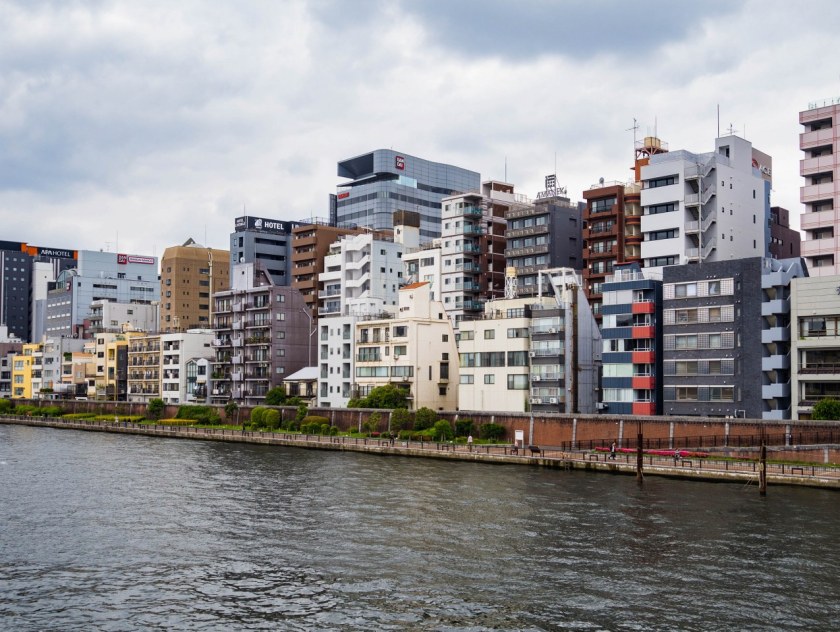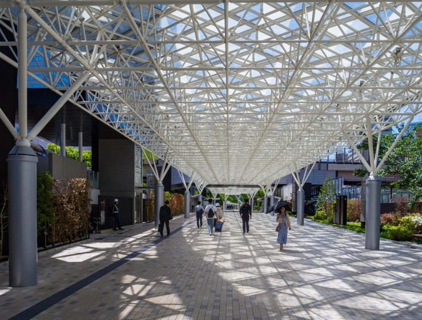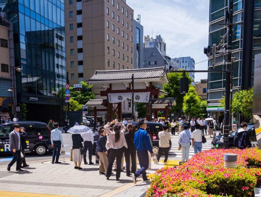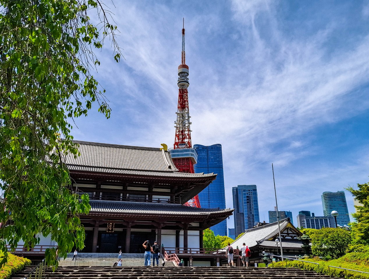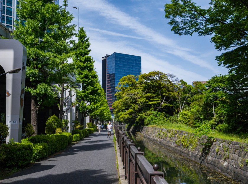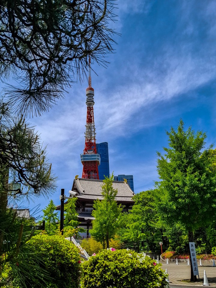 Stacja Hamamatsucho oddalona jest o 3 przystanki i 7 minut jazdy. To bardzo dobre miejsce na rozpoczęcie spaceru. A spacer to niezwykle ciekawy i dla tokijskiej tkanki emblematyczny. Na jego końcu czeka znacząca buddyjska świątynia Zojo-ji, po drodze z jednej strony mamy drapacze chmur, nowoczesne Blue Front Shibaura z pasażem tak wymuskanym, że aż idealnym, niczym żywcem wyjętym z wizualizacji architekta, są wiekowe i wysłużone budynki z ery Shōwa, szeregi nierzucających się w oczy małych bloków i domów pełnych sklepików i knajpek na parterach (kiedy i gdzie indziej wzbogacone o małą zieleń staną się bardzo lubianym widokiem) jest i wesoła twórczość, której estetyka jak i rozplanowanie jest dla europejskiego oka dość intrygująca. Pod mijanym mostem (co się Kasunagi zowie) cumują sobie yakatabune, współcześni następcy tradycyjnych japońskich drewnianych rozrywkowych łodzi znanych już w epoce Heian. Popołudniem i wieczorami z pewnością wyruszą na wieczorny rejs z kolacją i podziwianiem Tokio od strony Zatoki Tokijskiej czy rzeki Sumidy – co brzmi jak plan na przyszłoroczny powrót.