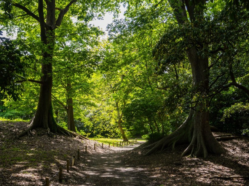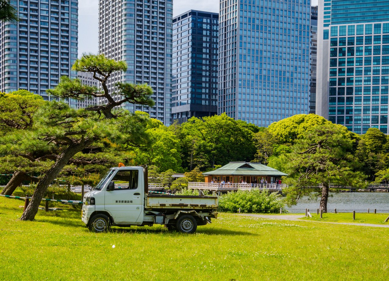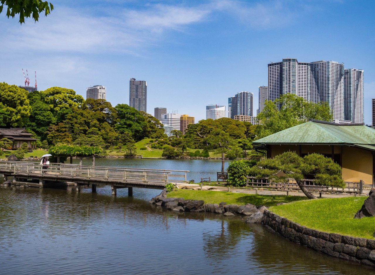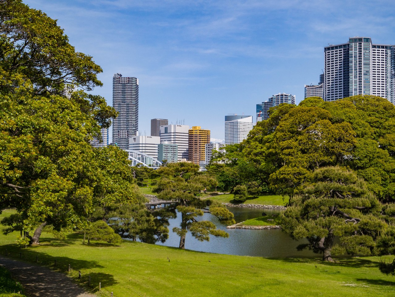 Dzisiejsze Ogrody jak chyba nigdy pozwalają na ucieczkę od zgiełku miasta i nawet z drugim planem w postaci wieżowców dają namiastkę wytchnienia od tego co poza ich granicami. Wiosną i tutaj kwitną śliwy oraz wiśnie a jesienią kiście barwią się na momiji. Kto chce zadowoli się spacerem wzdłuż trzech stawów, nie tylko tego jednego zasilanego wodą morską, ale i dwóch mniejszych, niegdyś służących do polowań na kaczki. Człowiek nawet nie zauważy jak w cieniu co najmniej stuletnich drzew (a mówi się, że nawet i jednej 300 letniej czarnej sosny), pokonując jeden z wielu mostków czy wspinając się na kopiec symbolizujący Fuji-san zrobi ponad 3 kilometry marszu. A jak się zmęczycie to w odbudowanej herbaciarni Nakajima można przysiąść na klasycznej matchy i małym słodkim co nieco.