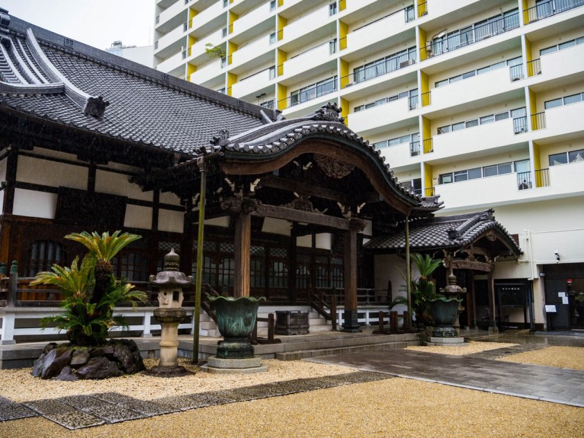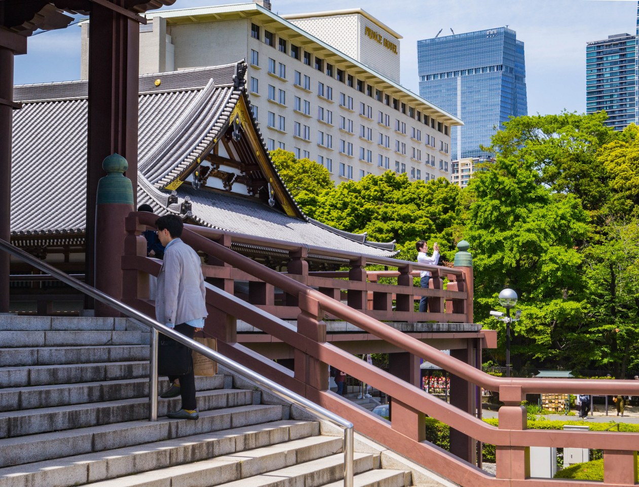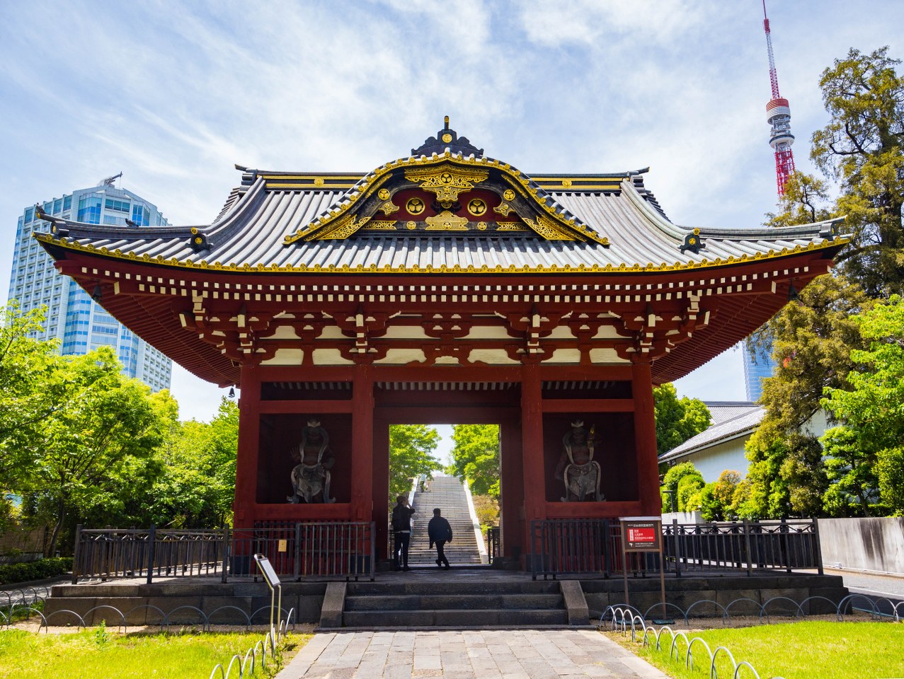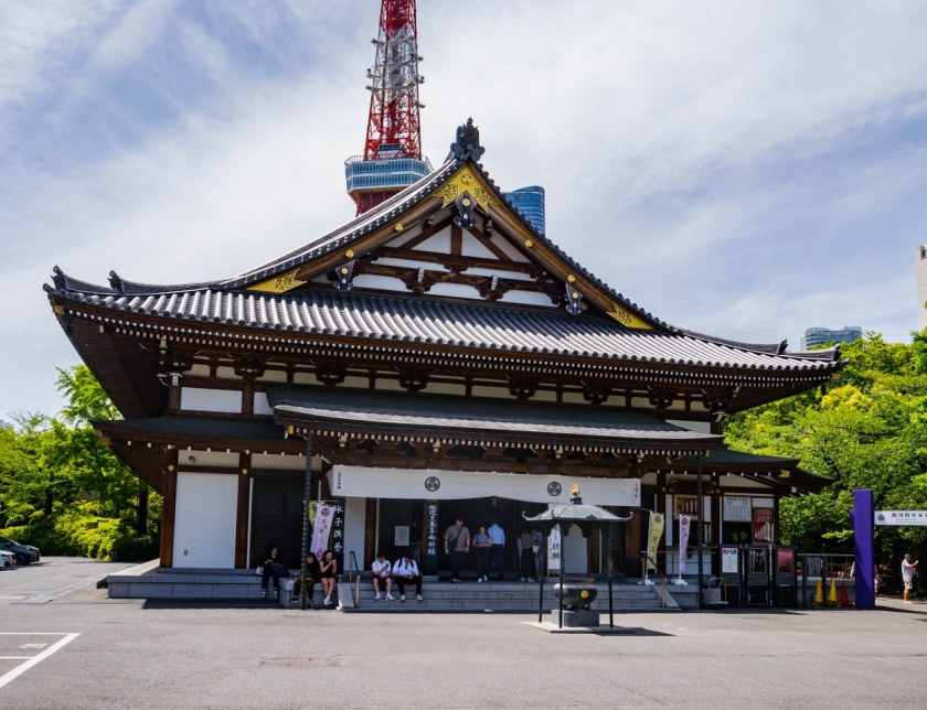 Z pełnym brzuchem, wolnym krokiem można było ruszyć na spotkanie z jedną z najważniejszych buddyjskich świątyń w Tokio. Tak naprawdę, wszystko zaczyna się jeszcze pośród wysokich budynków na ruchliwym skrzyżowaniu. Tam miniecie Wielką Bramę, Daimon od której do faktycznej świątyni Zojo-ji dzielić was będzie już tylko 108 ken (tradycyjna jednostka odległości, na nasze mająca 1,8m). Liczba ta nie jest przypadkowa i jej pokonanie ma odpowiadać wyzbyciu się 108 ludzkich pokus i trosk. Liczb i kryjących się za nimi znaczeń znajdziecie tu zresztą więcej, ot liczby schodów głównej hali zdecydowanie nie są przypadkowe.