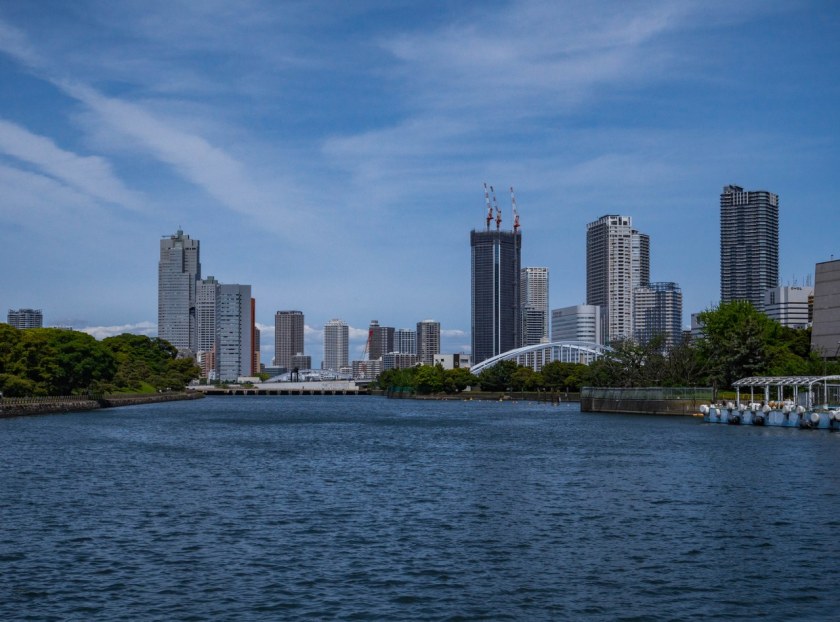 Pierw jednak, w cieniu potężnego i całkiem ciekawego drapacza chmur kompleksu WATERS takeshiba warto przystanąć nad Zatoką Tokijską i po rozkoszować się widokiem. A jest czym, i nawet jeśli taki wielkomiejski krajobraz nie jest waszym ulubionym to myślę, że bardzo nosem nie będziecie kręcić.