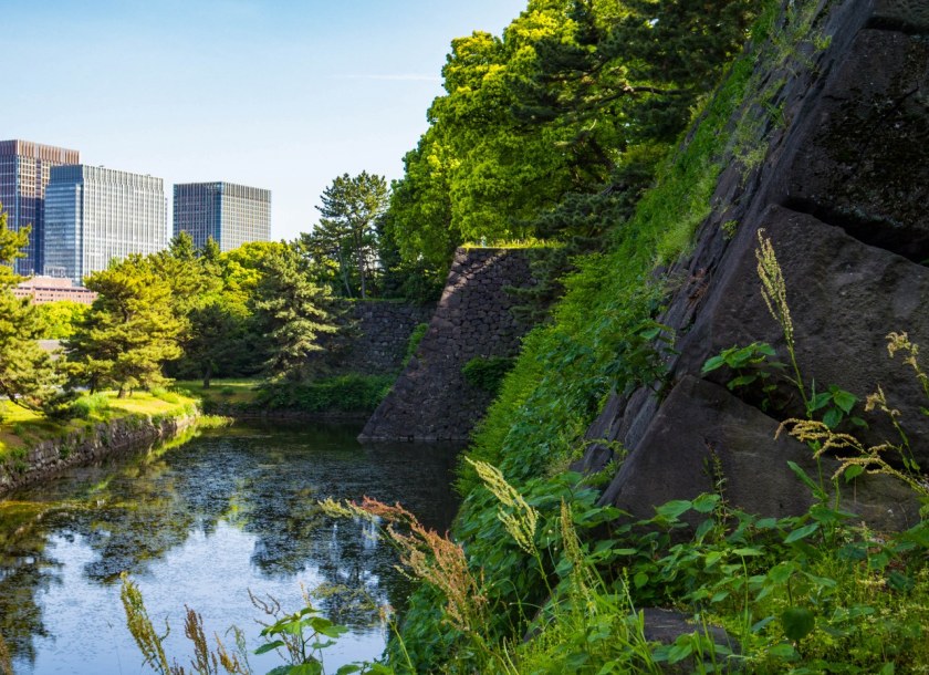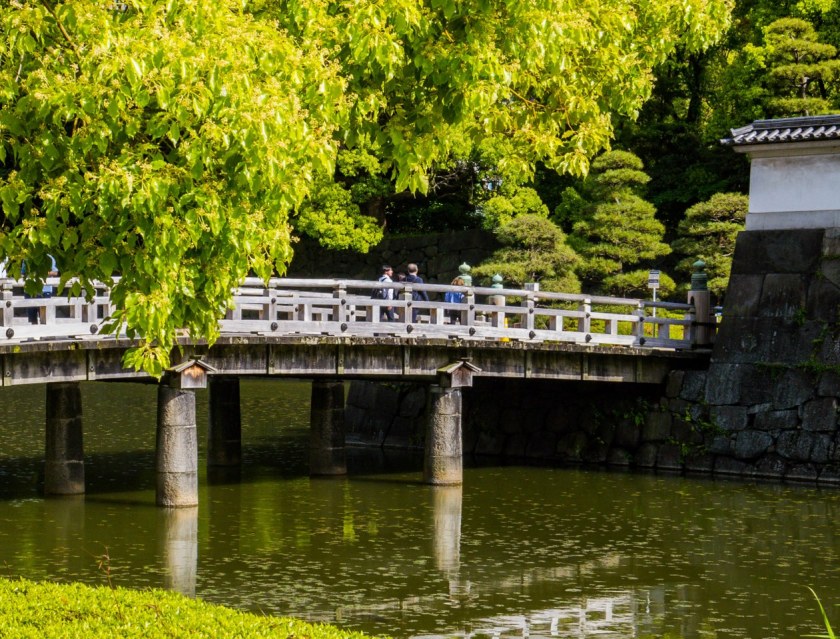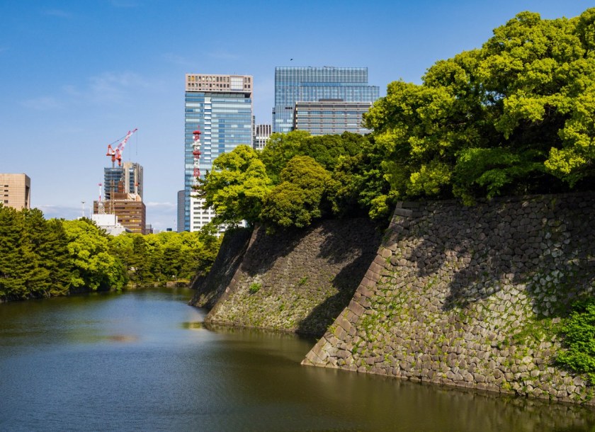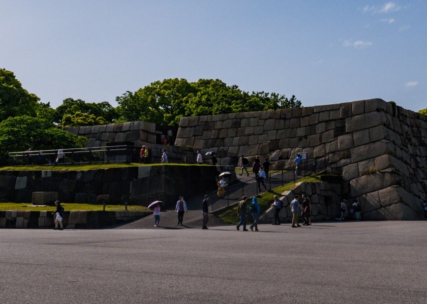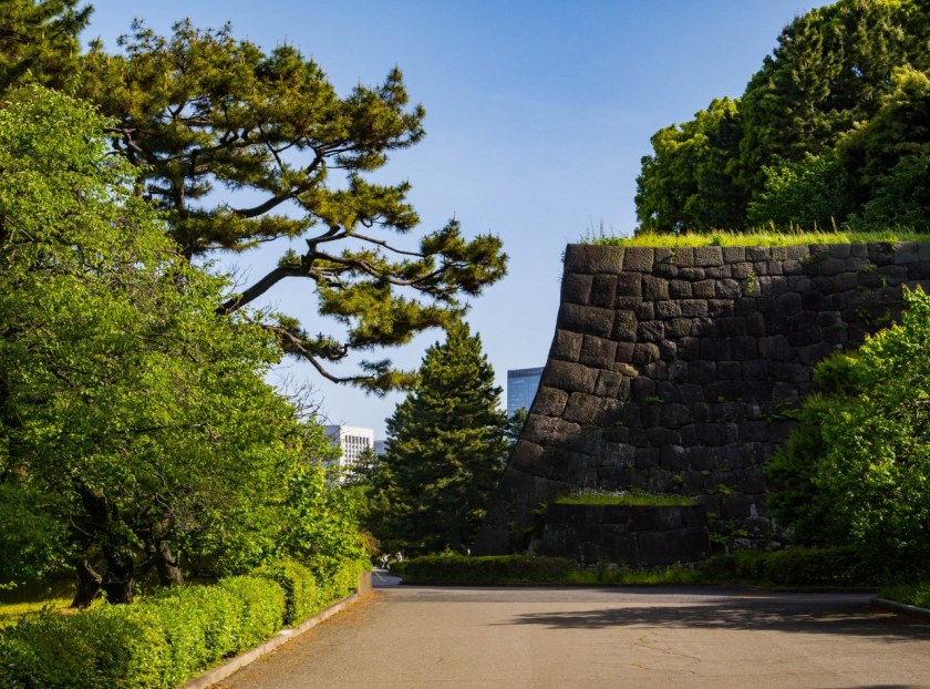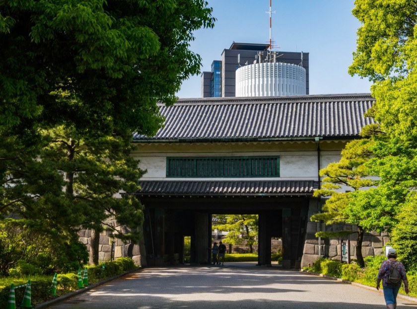 Pierwszy Pałac Cesarski zajmował ledwo skrawek przepastnego zamkowego kompleksu wzniesionego przez Tokugawów. Teren niegdyś gęsty od zabudowań, bram, bastionów i donżonów dziś zajęty jest przez trzy parki i ogrody, dostępne dla każdego. Po dawnych fortyfikacjach przetrwało raptem kilka budynków, dla cesarza i jego świty wybudowano nowe, inspirowane tradycją acz romansujące z nowoczesnością budynki, część z nich zobaczycie na wspomnianym oprowadzaniu. Co nieco na wyciągnięcie ręki macie również bez konieczności zapisywania się na jakiekolwiek listy – do ogrodów prowadzą wiekowe bramy, które wraz z olbrzymimi murami fos dają namiastkę tego jak cały kompleks musiał dawniej wyglądać.