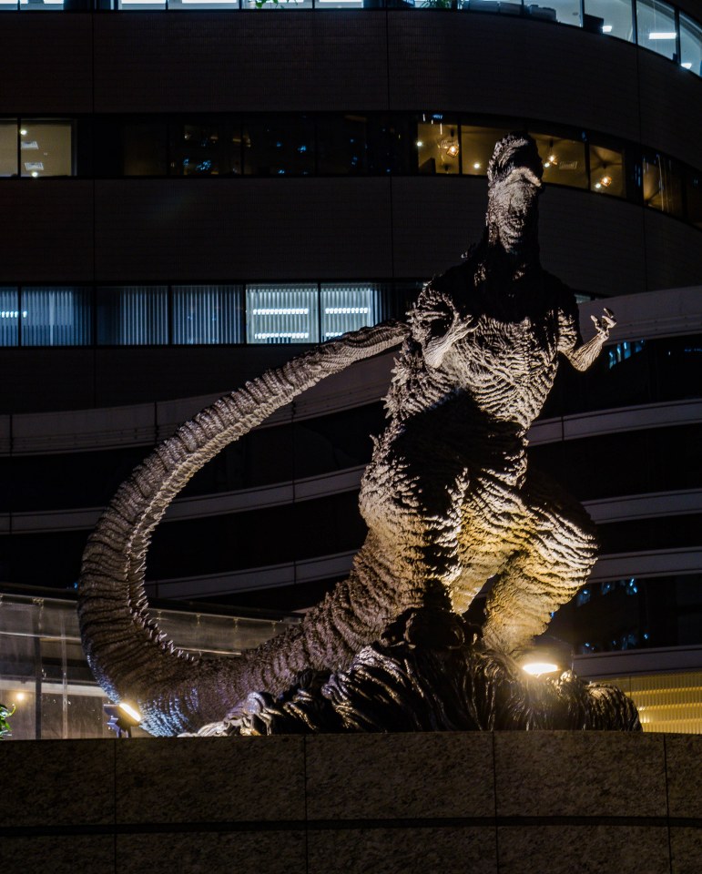 Powrót w okolice Pałacu urozmaiciłem wysiadką na stacji Shimbashi skąd w kilka minut można dojść do skweru o pięknej, w sumie wszystko mówiącej nazwie Hibiya Godzilla Square. W centrum niewielkiego placu stoi sobie Król Potworów, wzorowany na modelu z Shin Godzilli. Przy czym całkiem ciekawy jest myk – zapewne nie zamierzony – skali i ogromu otaczających Godzillę budynków (w tym biurowca wytwórni Tōhō): w końcu to jaszczur jest tym małym.