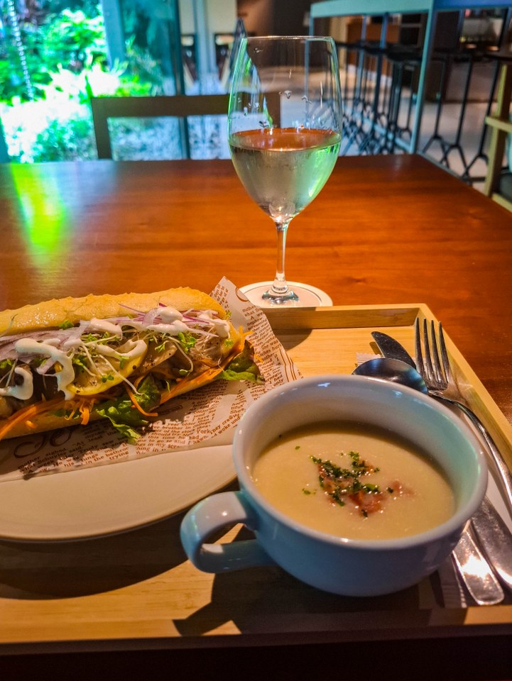 Wtedy jednak jeny sukcesywnie mi znikały, ot między innymi w Garden House Kamakura, która to zainteresowała mnie wyborem japońskich win. Jestem prostym człowiekiem i Wein mi na nazwisko, jakże więc mogłem nie przystanąć. Fajne miejsce, takie nowoczesne, ale stylowe z fajnym patio z ogródkiem. Jedzonko co ciekawe w dużej mierze zachodnie, a raczej w stylu yoshoku czyli oryginalnie zachodnie, ale z wyraźnym japońskim sznytem. No i przede wszystkim mają własne, przepyszne pieczywo – a dobry chlebek czy bagieta to nie są w Japonii oczywiste sprawy.