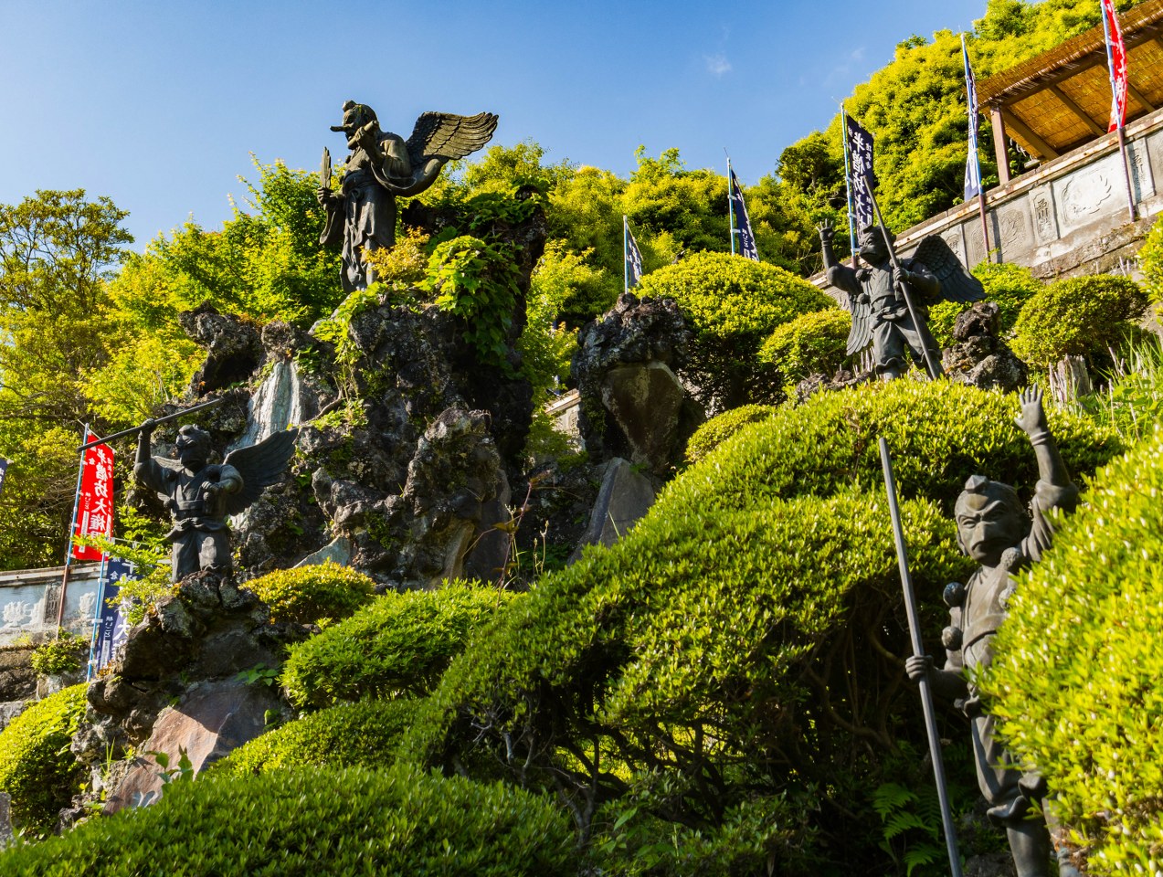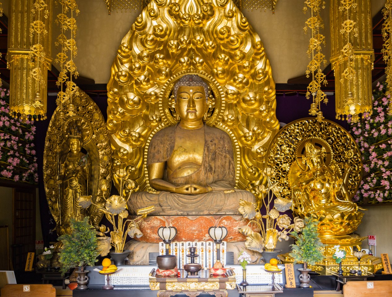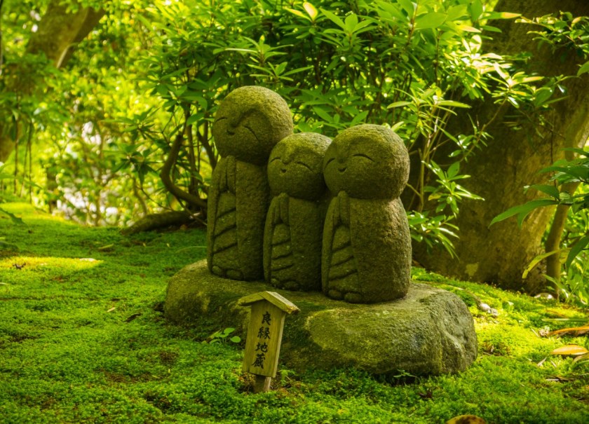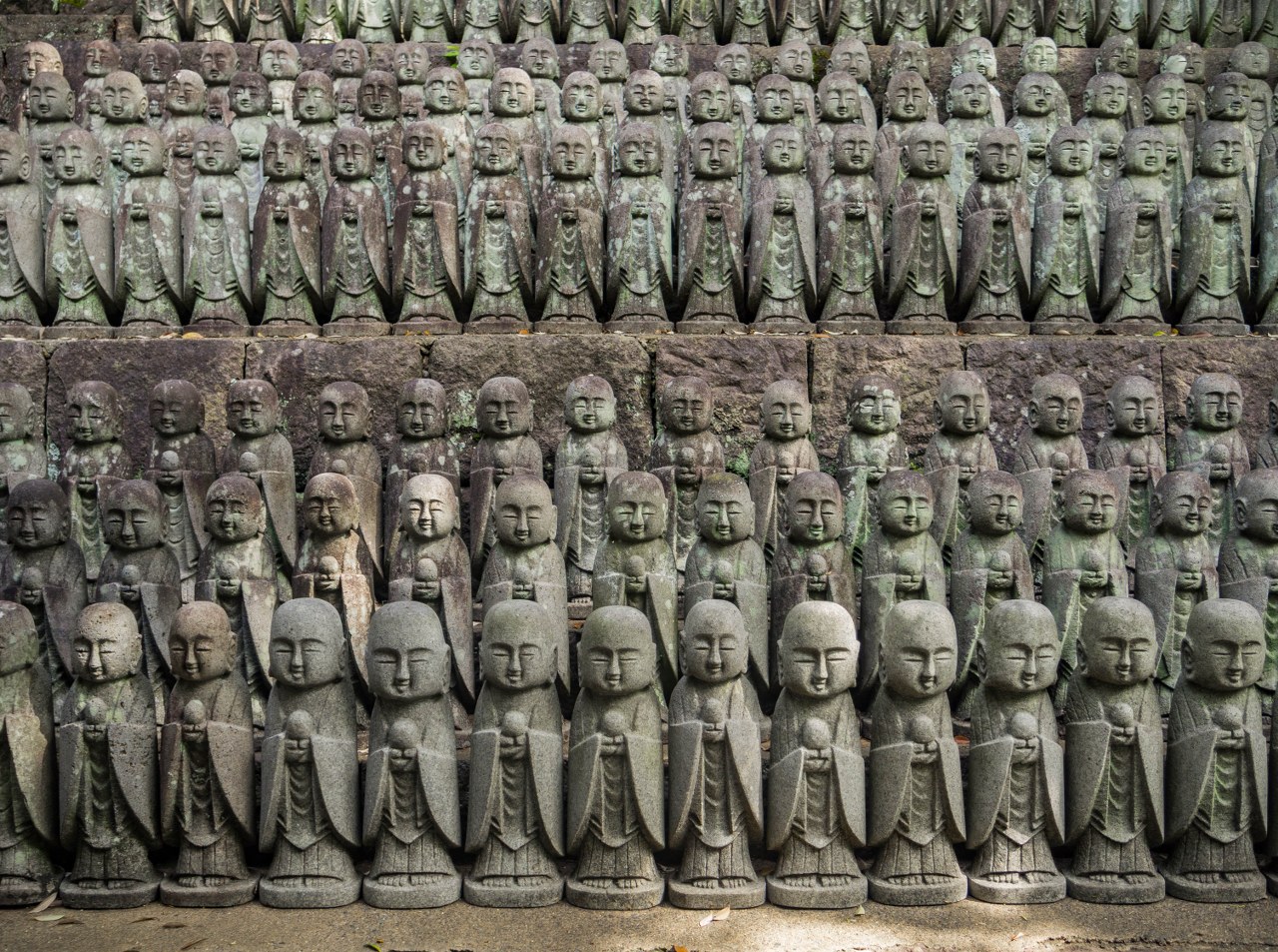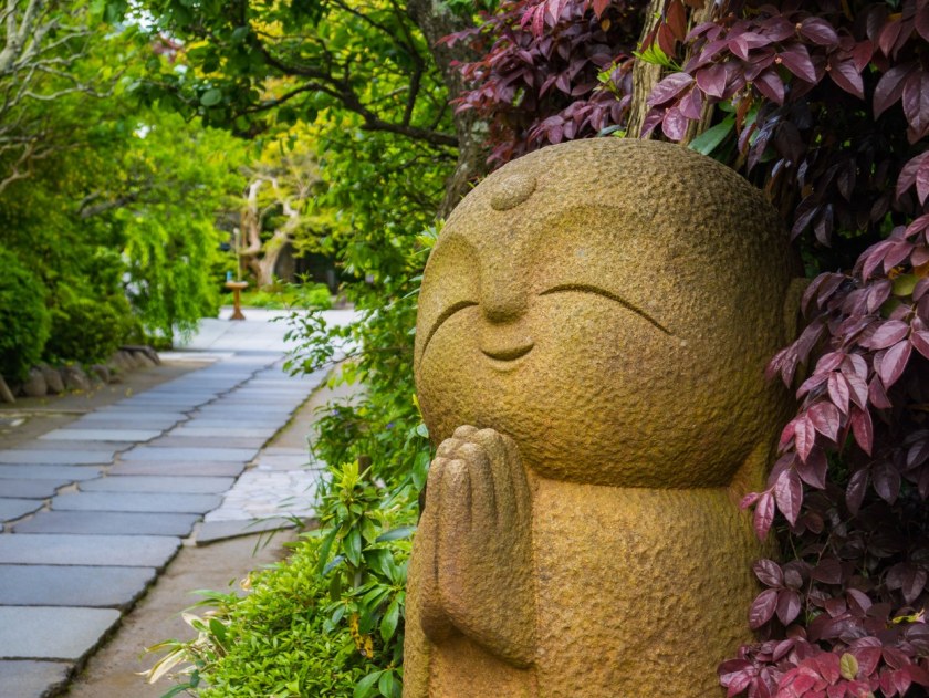 W stawie tuż za bramą dostojnie pływają kolorowe karpie koi. W cieniu drzew uśmiecha się trójka posążków Jizo (opiekuna nienarodzonych i przedwcześnie zmarłych dzieci) a nieopodal, przy niewielkiej kapliczce posążków bodhisattwy są już setki, tym razem – w odróżnieniu do Tokio – nie są przyodziane w czerwone ubranka.