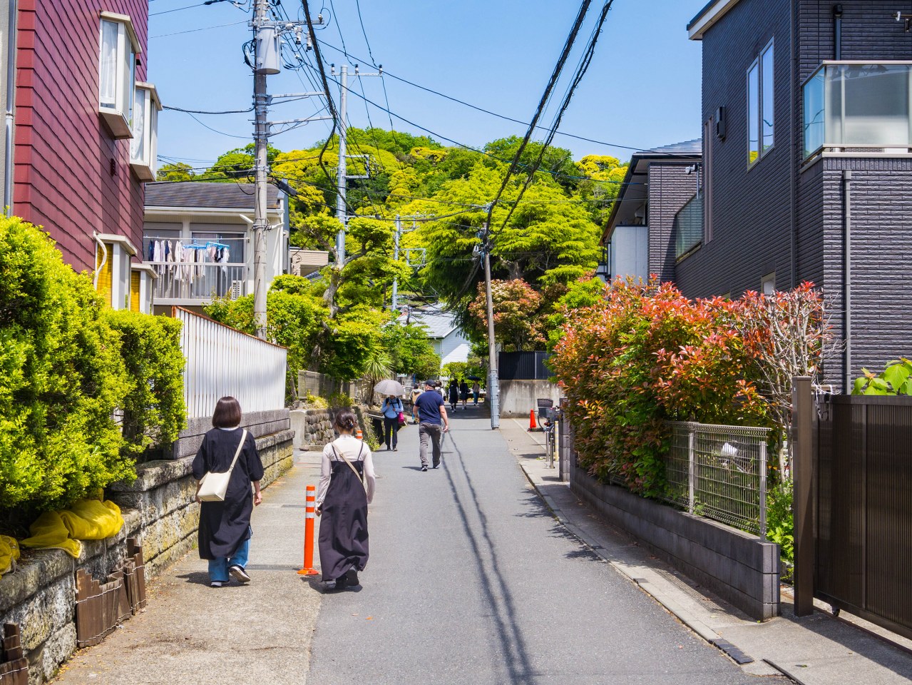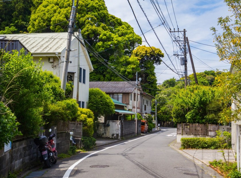 Kamakura nie potrzebowała wiele czasu by mnie do siebie przekonać. Uliczka prowadząca do świątyni Hasadera ma w swoim portfolio współczesne blaszako-plastiki, ale i totalnie klimatyczne, tradycyjne domy z cudownymi dachami krytymi dachówką, do tego nisko zawieszone kable i wszędobylską zieleń majaczącą na dalszym planie. Fajne to uczucie kiedy takie uliczki widzi się na żywo a nie w anime, j-dramach czy na ilustracjach Mateusza Urbanowicza.