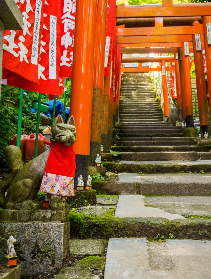 Na coraz węższych uliczkach zacząłem współczuć mieszkańcom, nawet tymi małymi japońskimi autkami jazda tam musi być wyzwaniem. Tam gdzie kończy się droga dla samochodów, zaczyna się delikatne podejście, prowadzące do lasu i skrytego weń chramu. Witajcie w domenie Inari gdzie pod czujnym okiem tysięcy malutkich lisów pokażę wam piękną, małą perełkę.